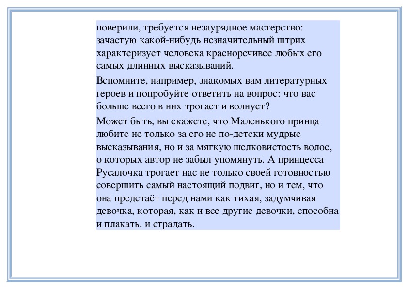 историю о конкретных людях. На первое местовыступают словесные описания внешности героев, их