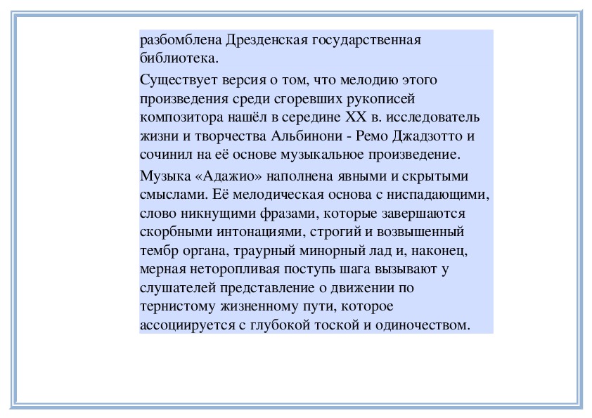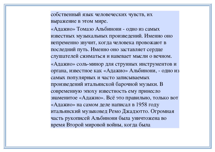 2. Музыка: Т. Альбинони. «Адажио» (слушание).