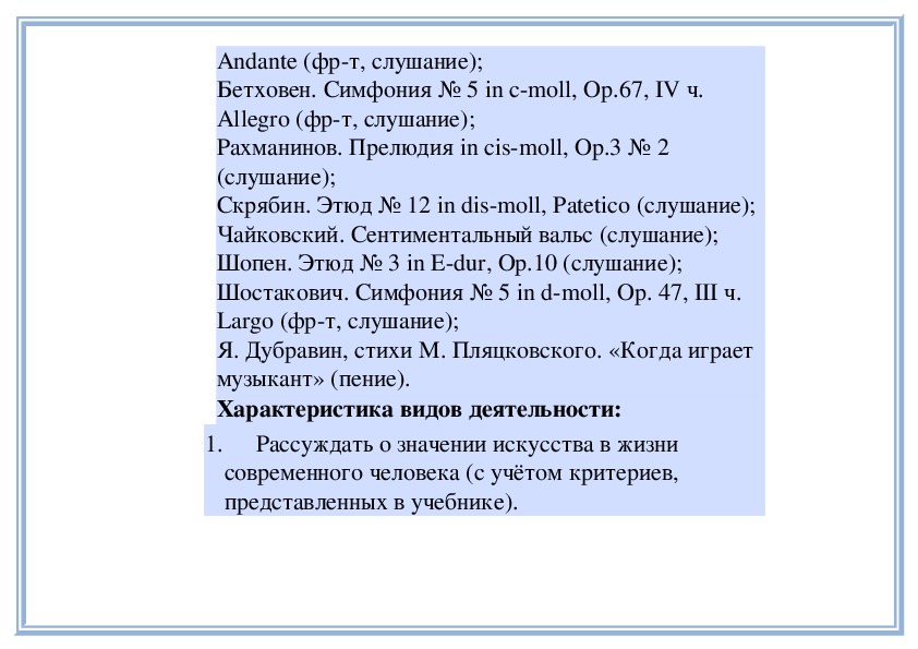 4. Анализировать способы воплощения содержания в музыкальных произведениях.