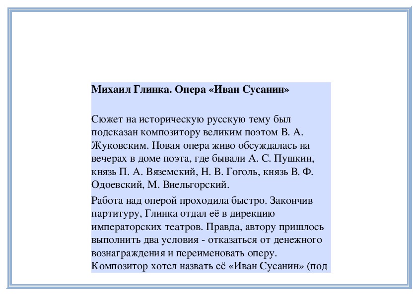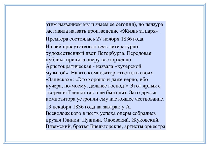 Композитор хотел назвать её «Иван Сусанин» (подэтим названием мы и знаем её сегодня), но цензура