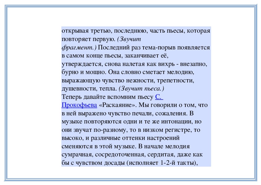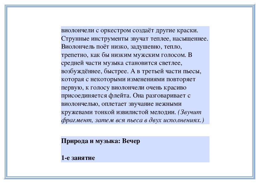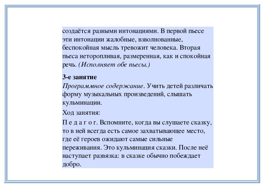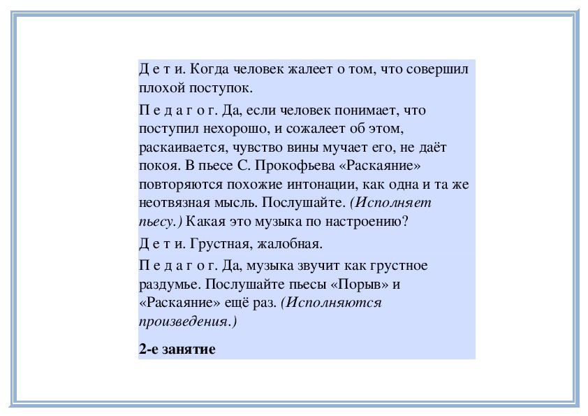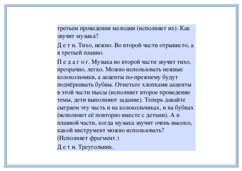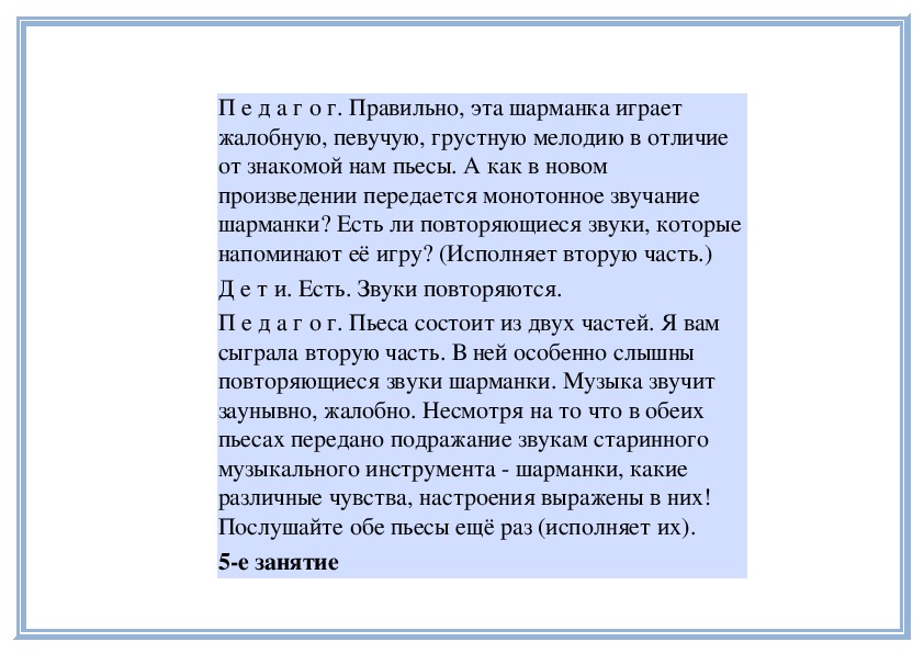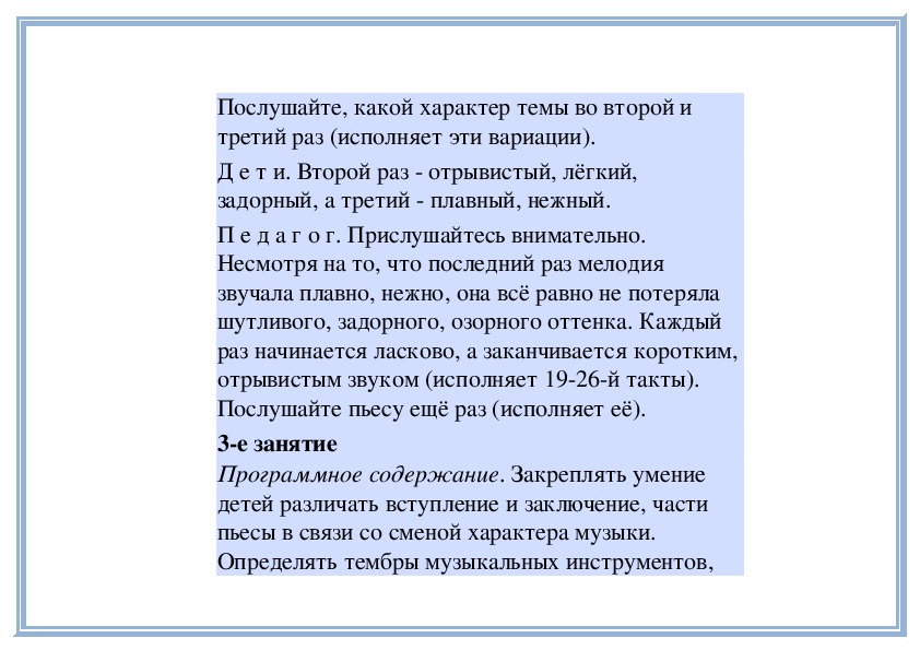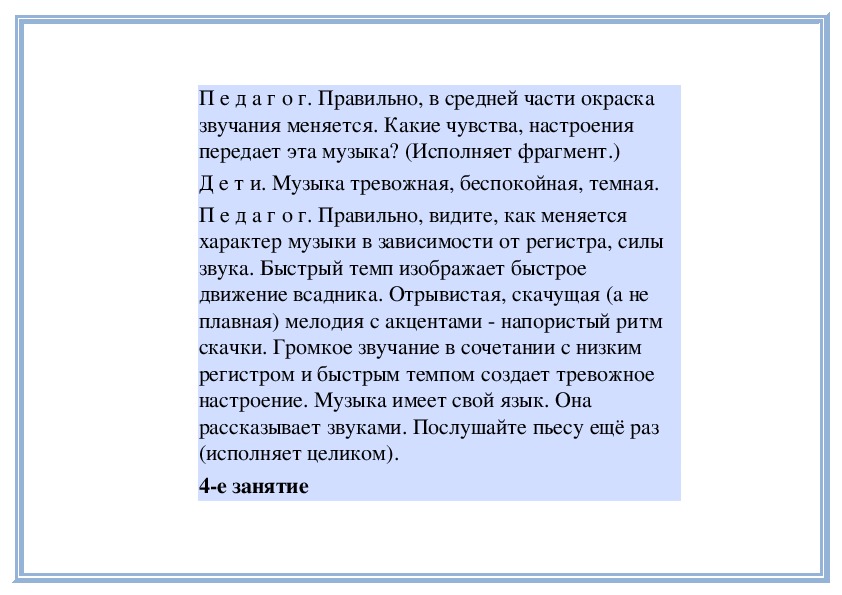 которым вы познакомились на прошлом занятии.Постарайтесь услышать, как в середине пьесы