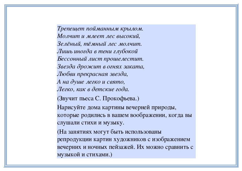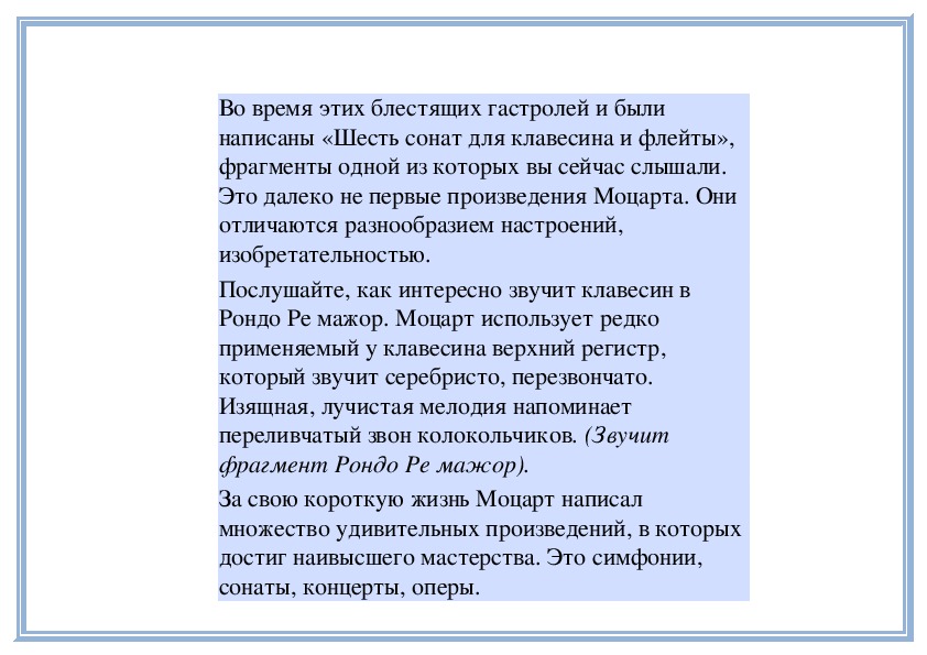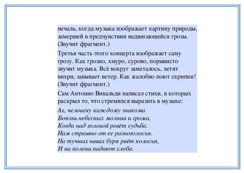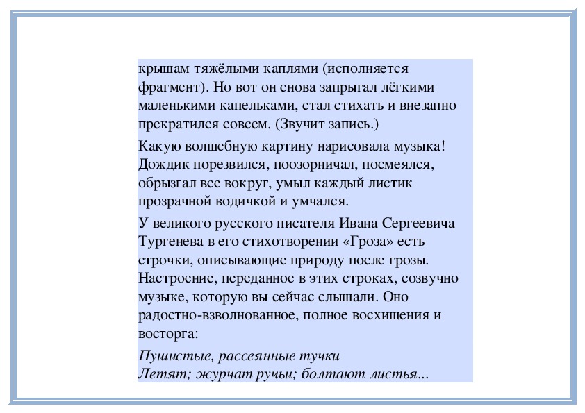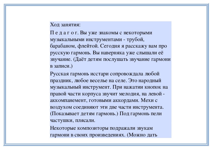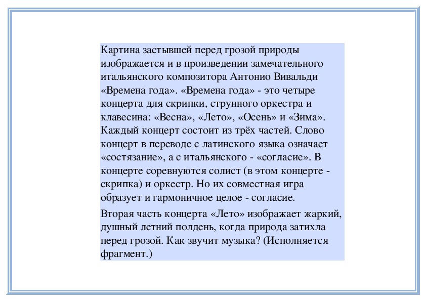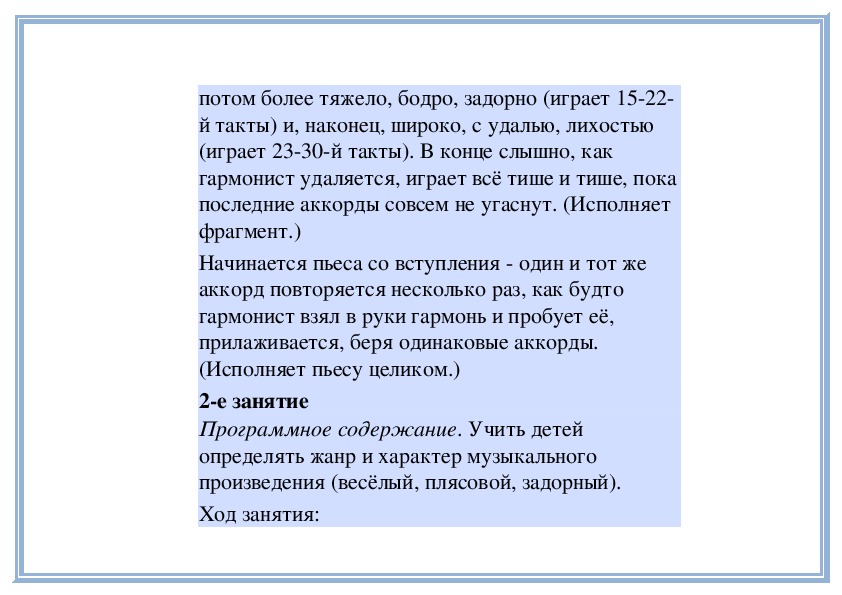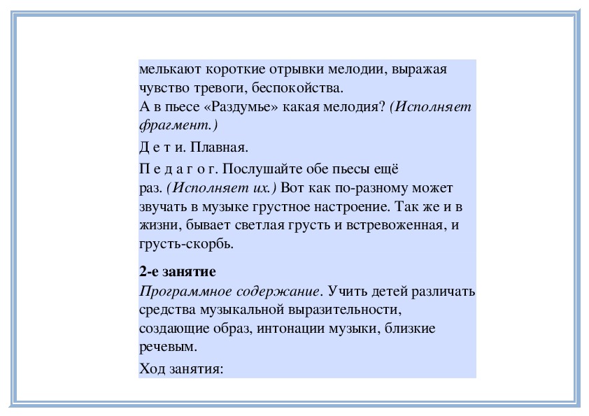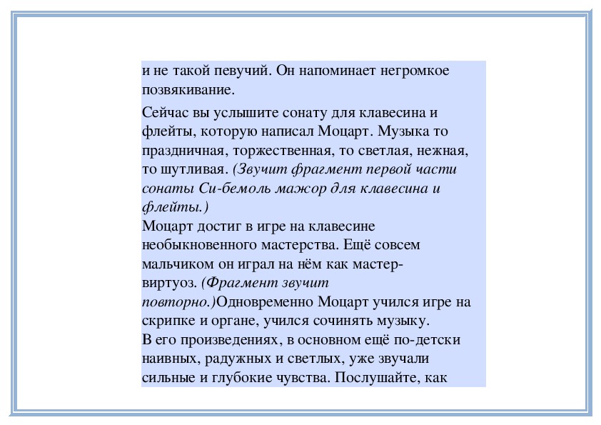 которым вы познакомились на прошлом занятии.Постарайтесь услышать, как в середине пьесы