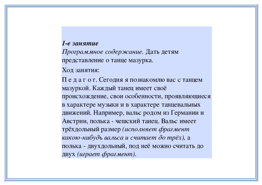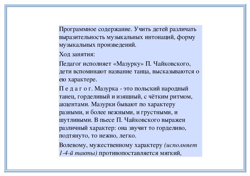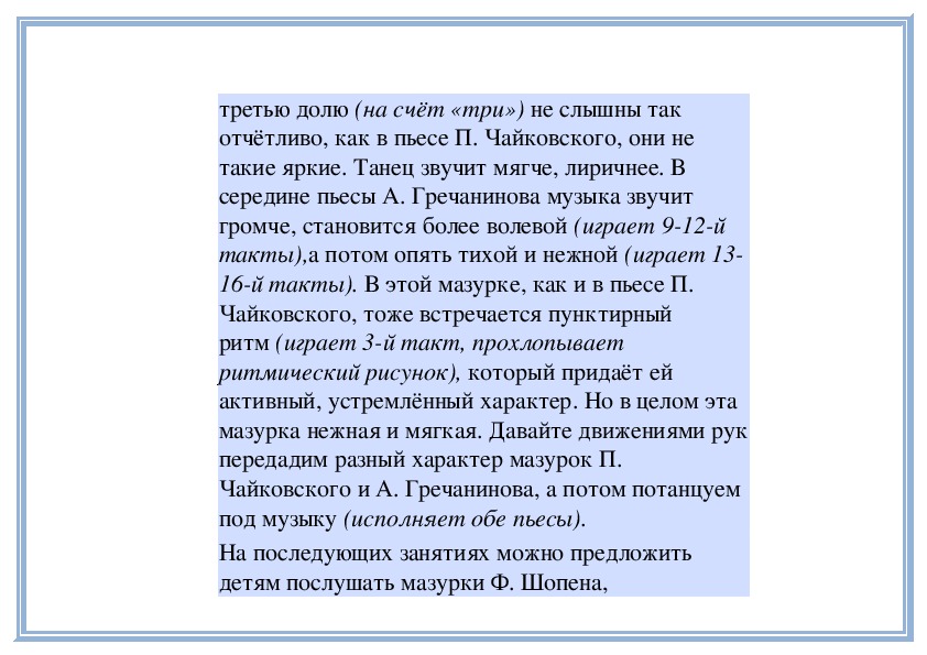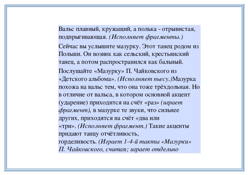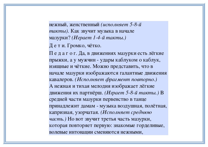 П е д а г о г. Да, в движениях мазурки есть лёгкие
