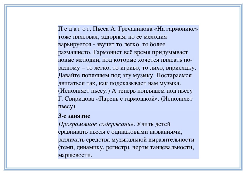 вернулась мелодия, которая звучала в началеуверенная и бойкая. В пьесе А. Гречанинова нет