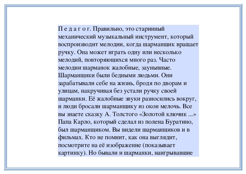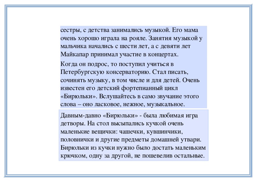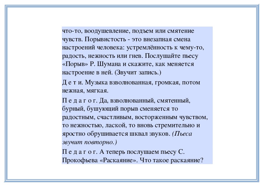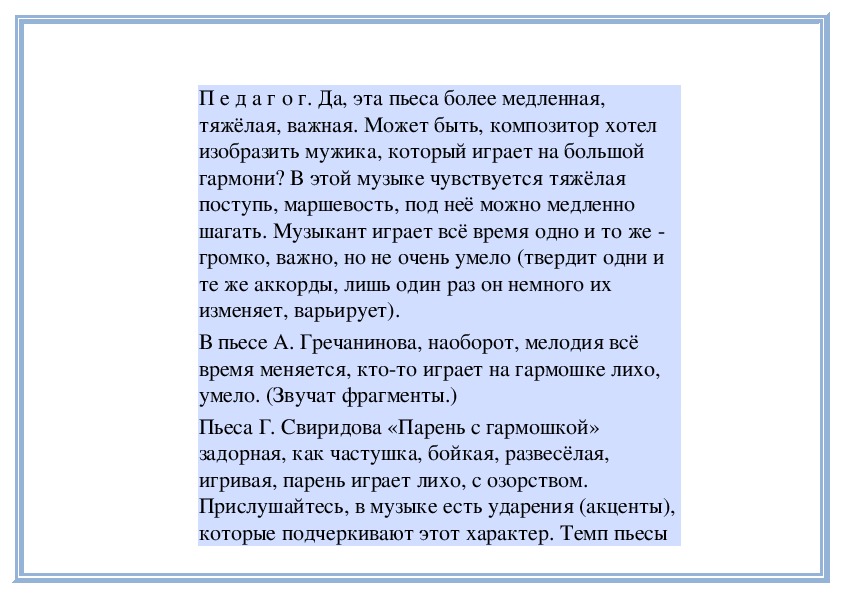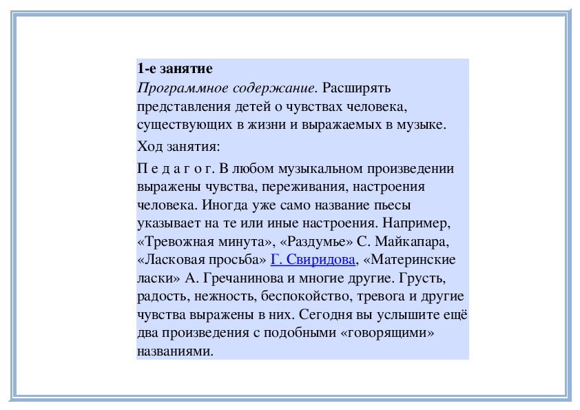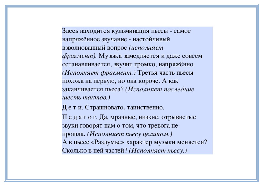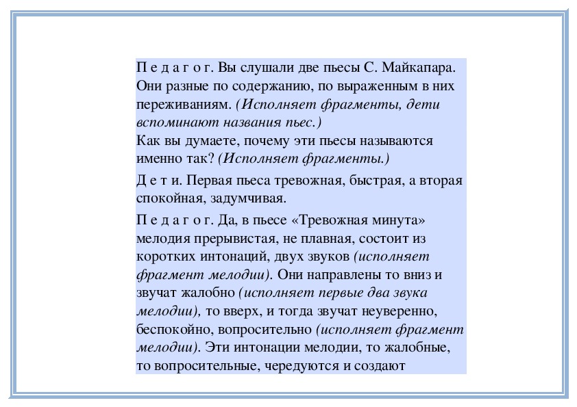 П е д а г о г. Я сыграю вам пьесу С. Майкапара