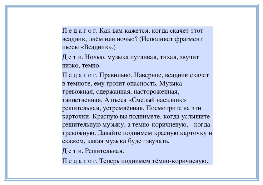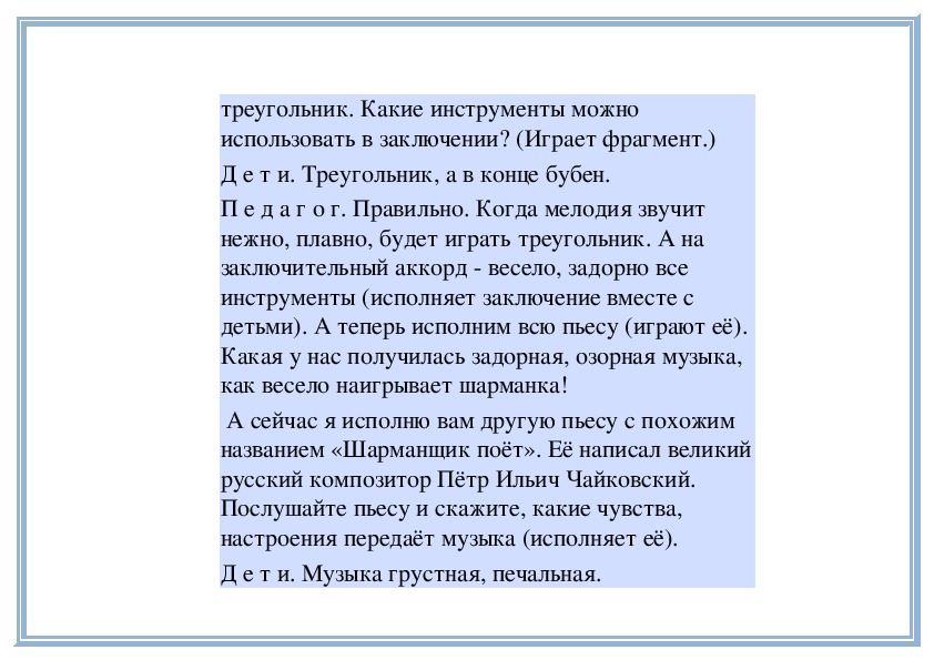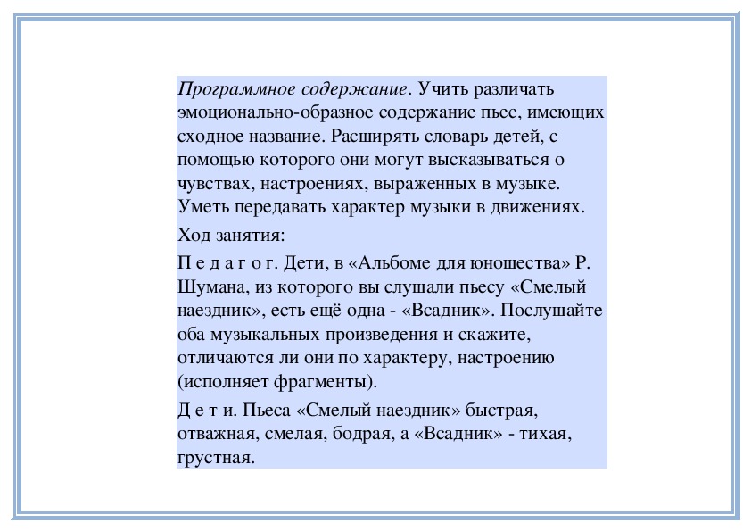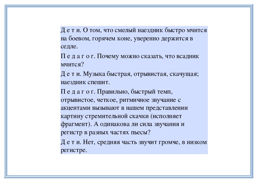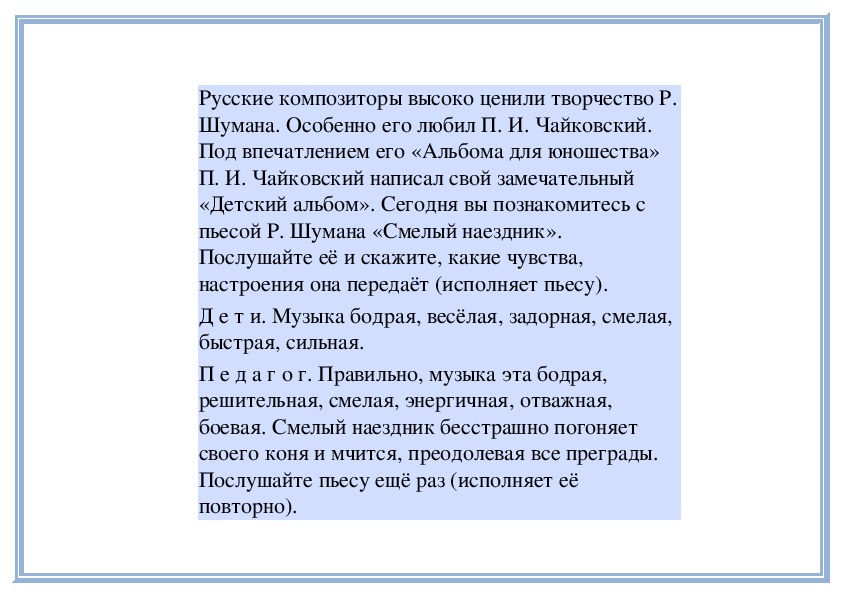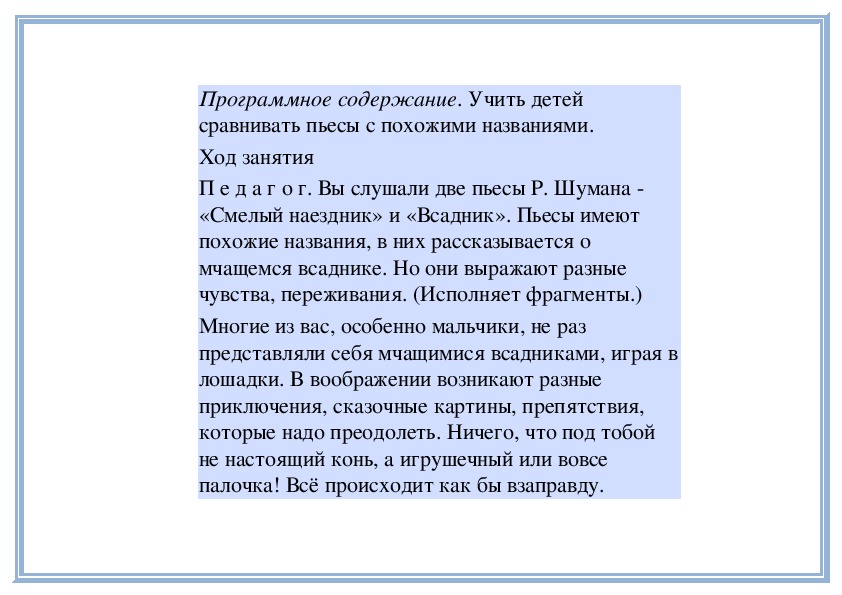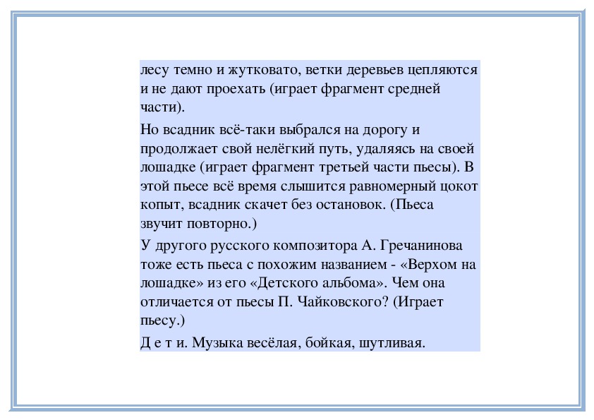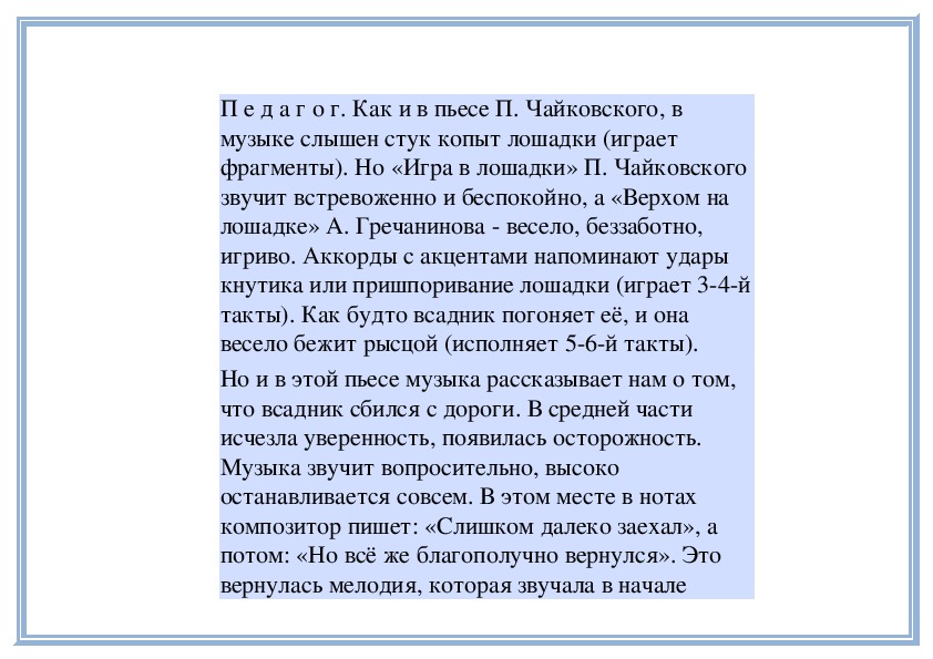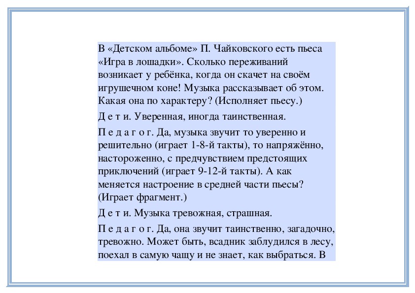 фрагменты). Но «Игра в лошадки» П. Чайковского