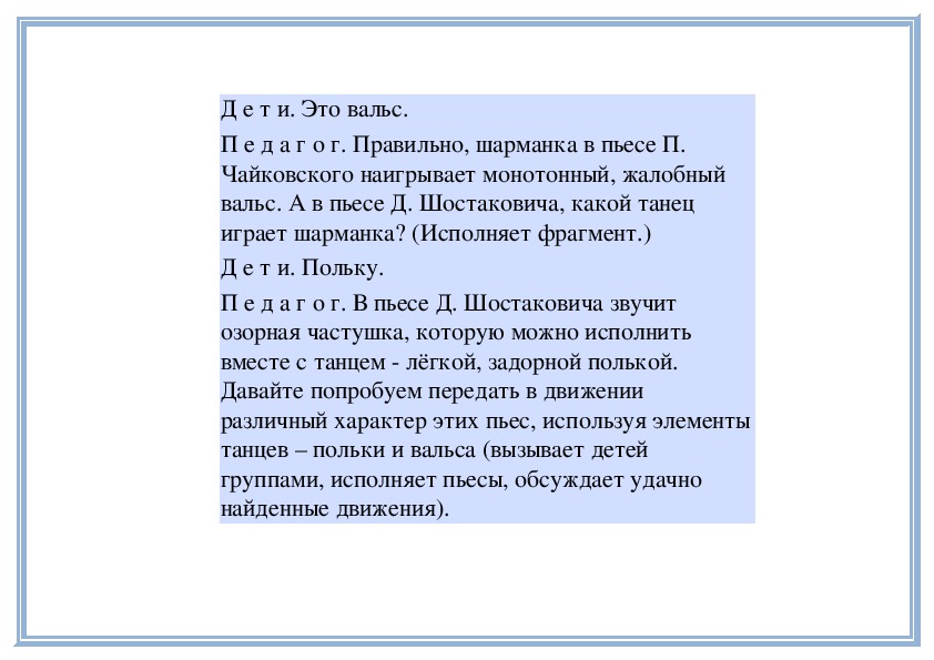 П е д а г о г. Да, этот вальс звучит радостно, празднично, блестяще, изящно. (Исполняет его повторно.)