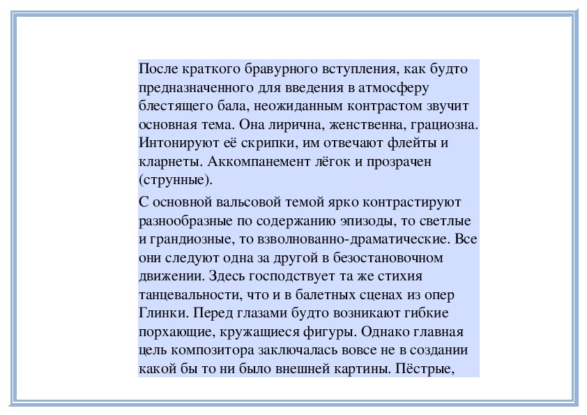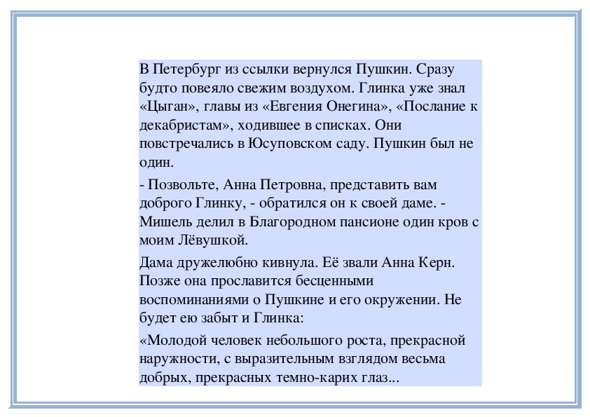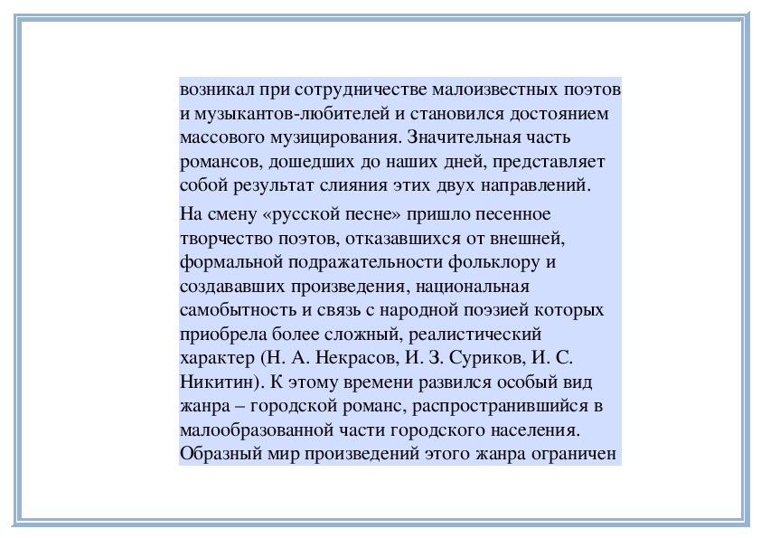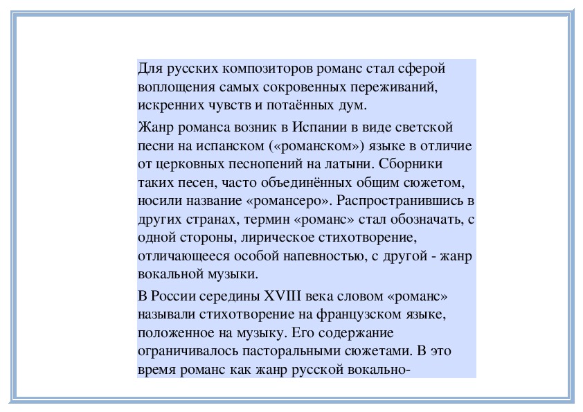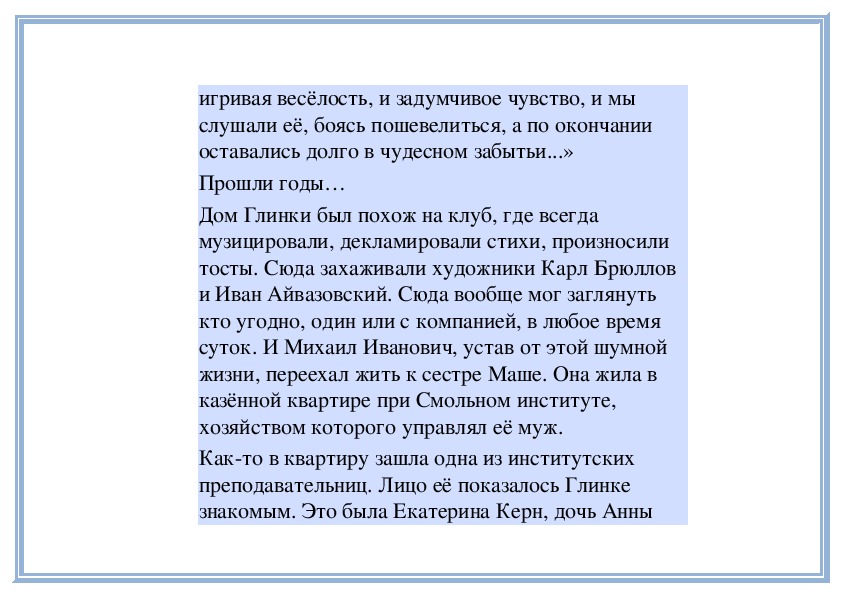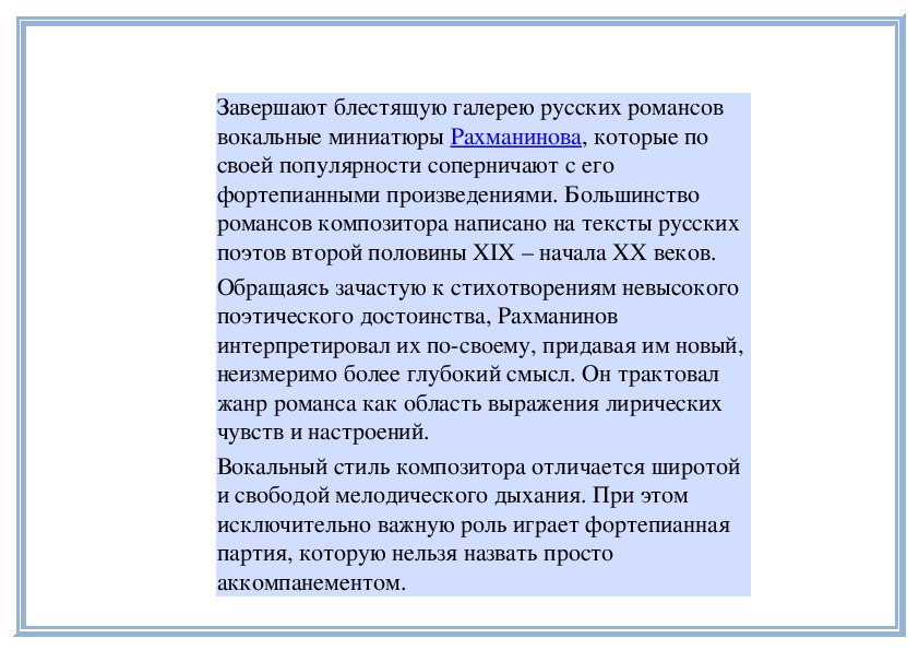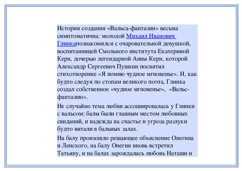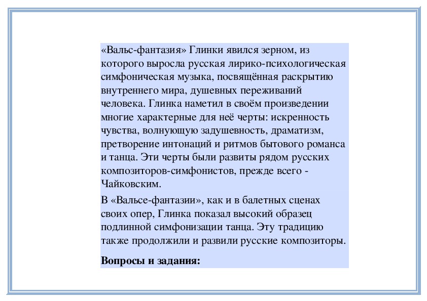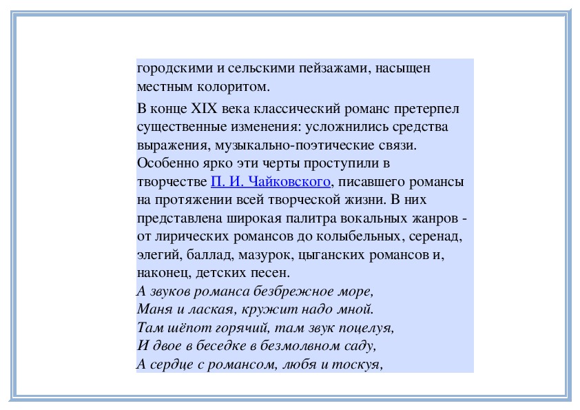 является одним из немногих образцов «русскойпесни» в зрелых романсах Глинки. Эта простая и