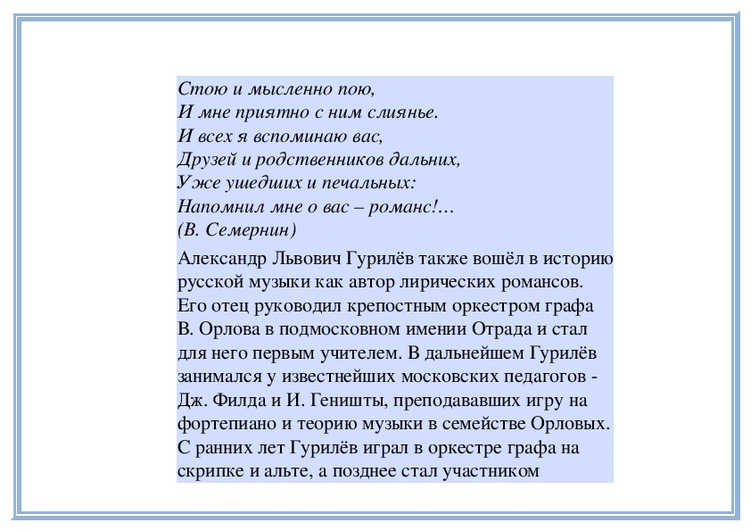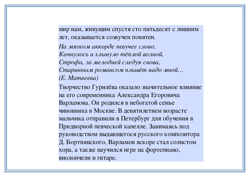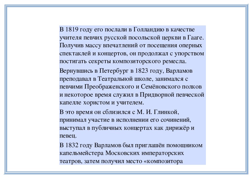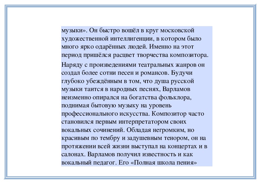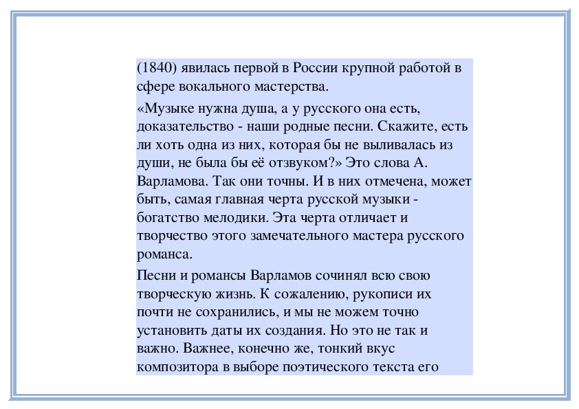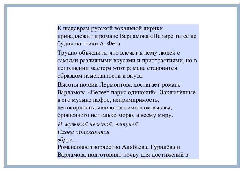 Варламова подготовило почву для достижений вэтом жанре первого классика русской музыки М. И.