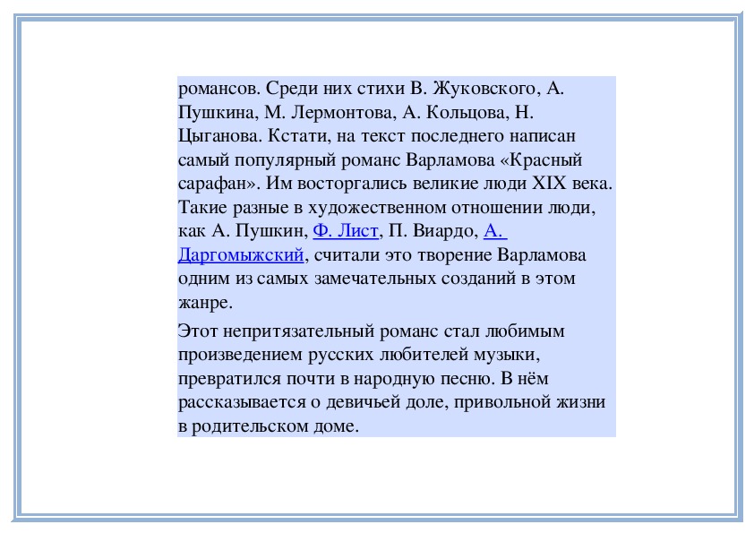 как А. Пушкин, Ф. Лист, П. Виардо, А.