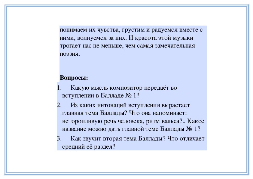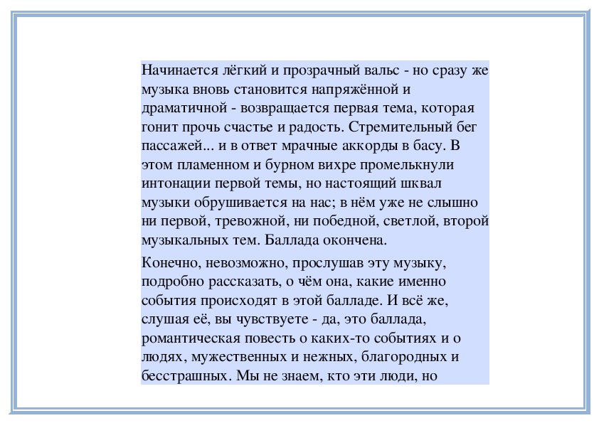 трёхчастной формы этого произведения, сам Шопенсчитал лучшей изо всех, им созданных.