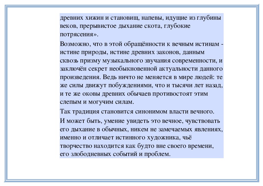 чтобы средствами музыки тембров, гармоний, нопрежде всего ритма показать извечное соотношение