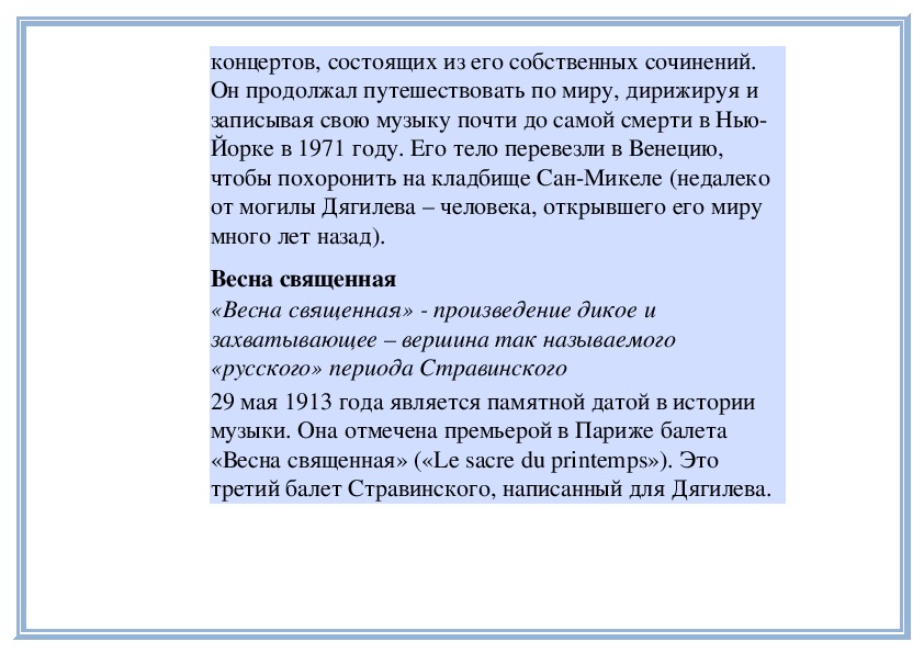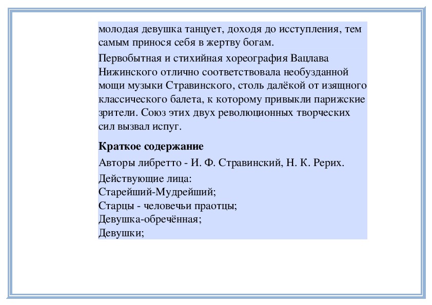 А. Лядова, «Жарптица» и «Весна священная» И.