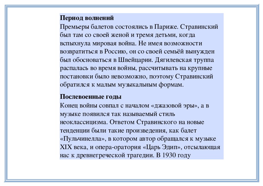Стравинского, «Замок Синей Бороды» Б. Бартока,