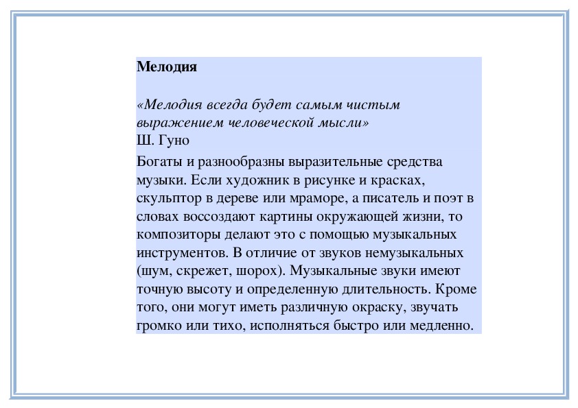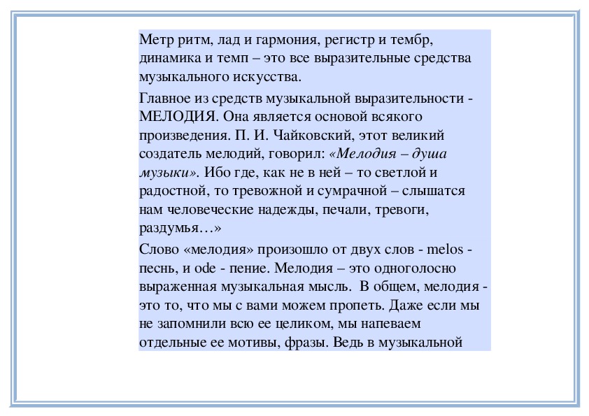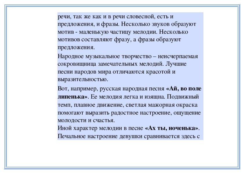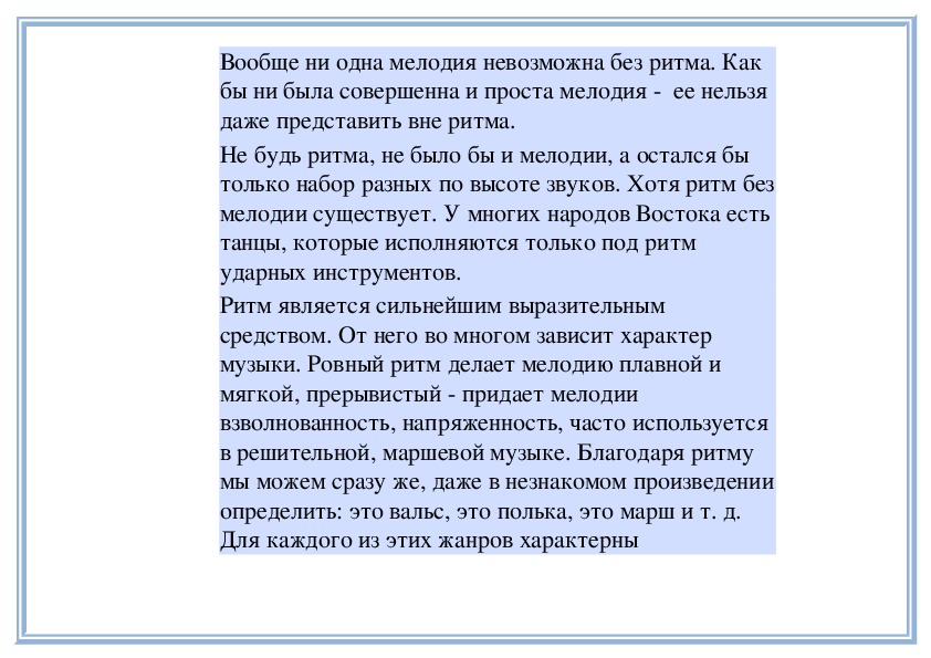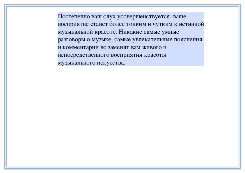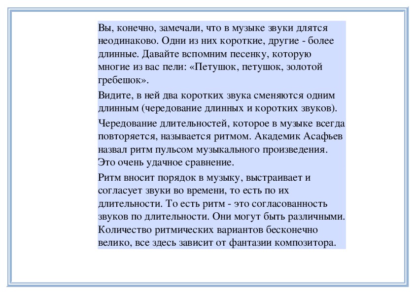 воспримет смысл сказанного.Вы, конечно, замечали, что в музыке звуки длятся