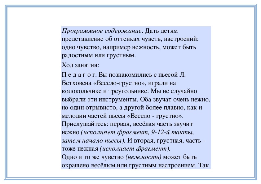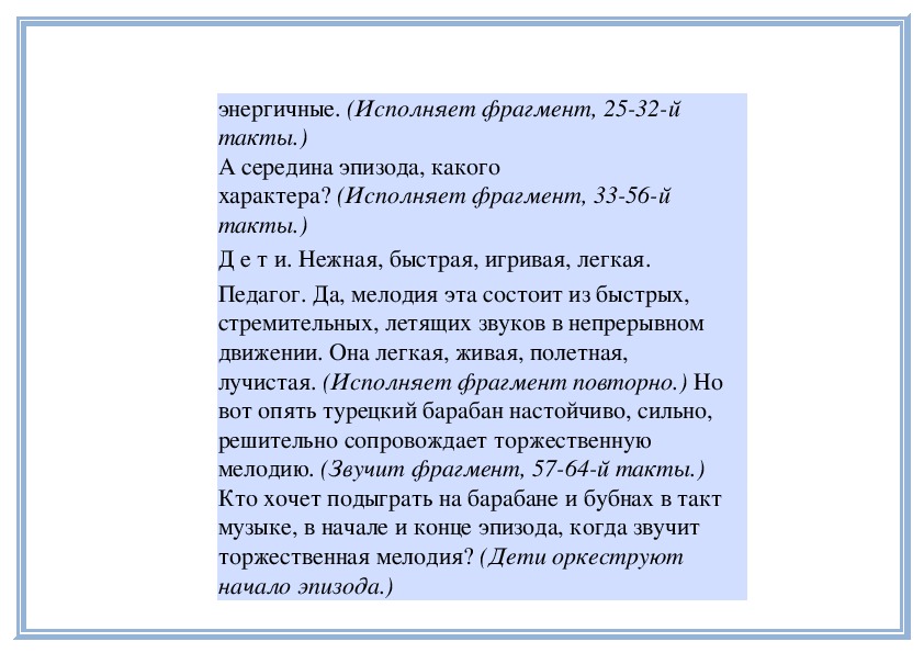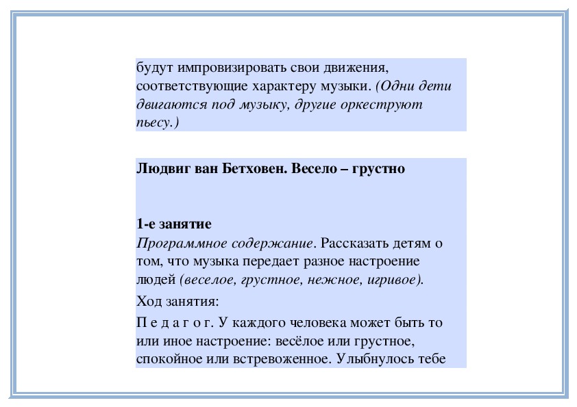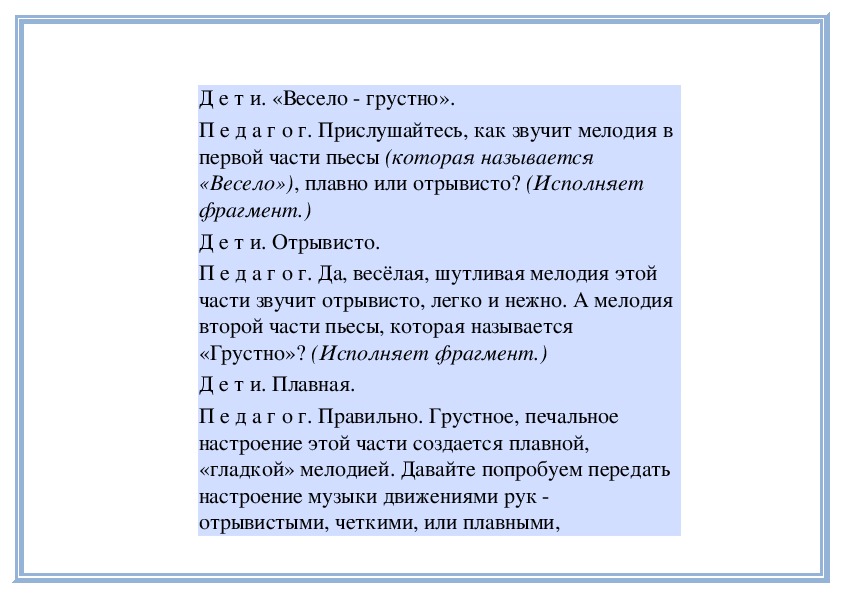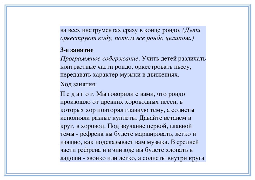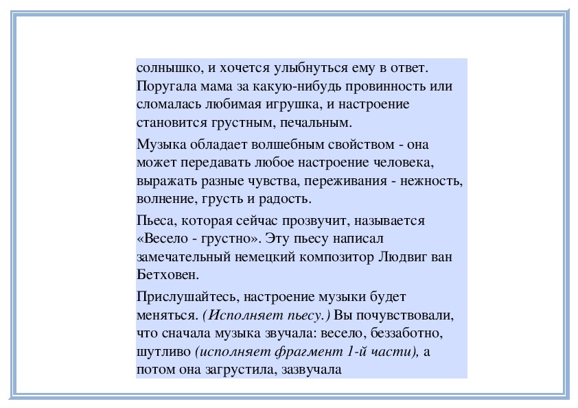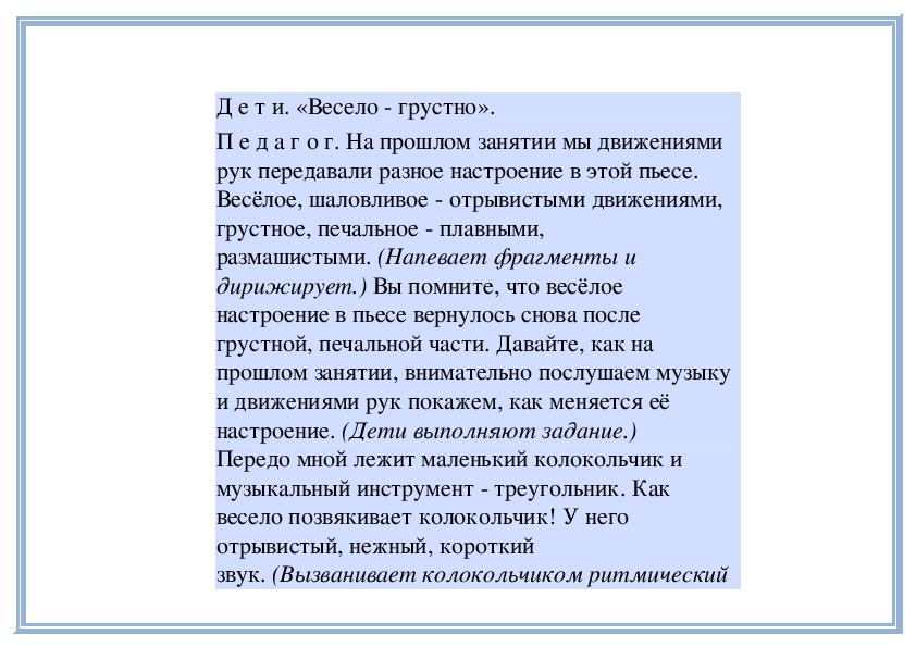 Ход занятия:П е д а г о г. Вы ознакомились с сонатой ре мажор