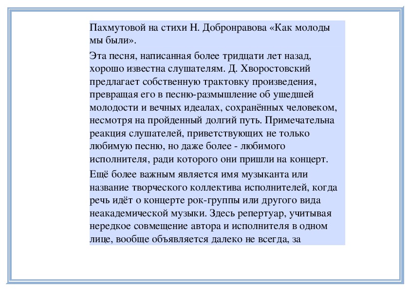 Дмитрия Хворостовского: исполнение песни А.Пахмутовой на стихи Н. Добронравова «Как молоды