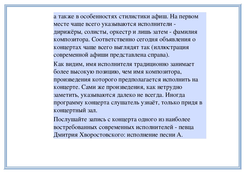 отражение в составлении анонсов и рекламных текстов,а также в особенностях стилистики афиш. На первом