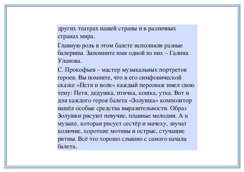 Знакомство с балетом С. Прокофьева