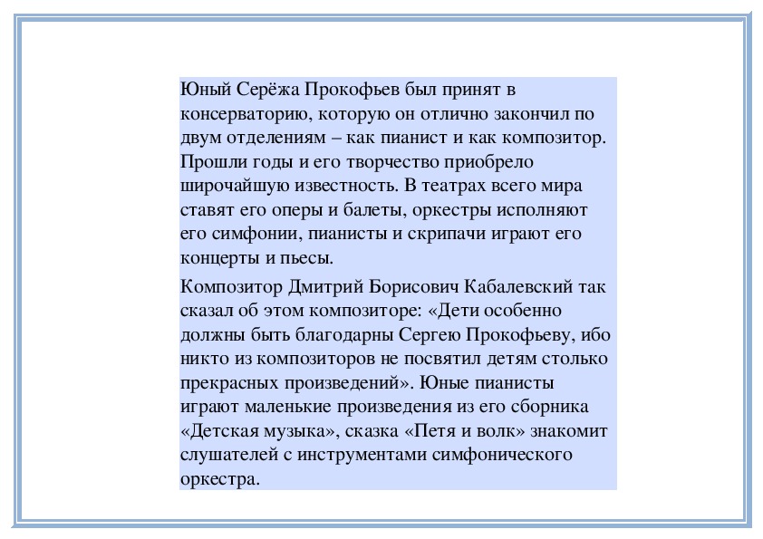 мне нравится!»Юный Серёжа Прокофьев был принят в