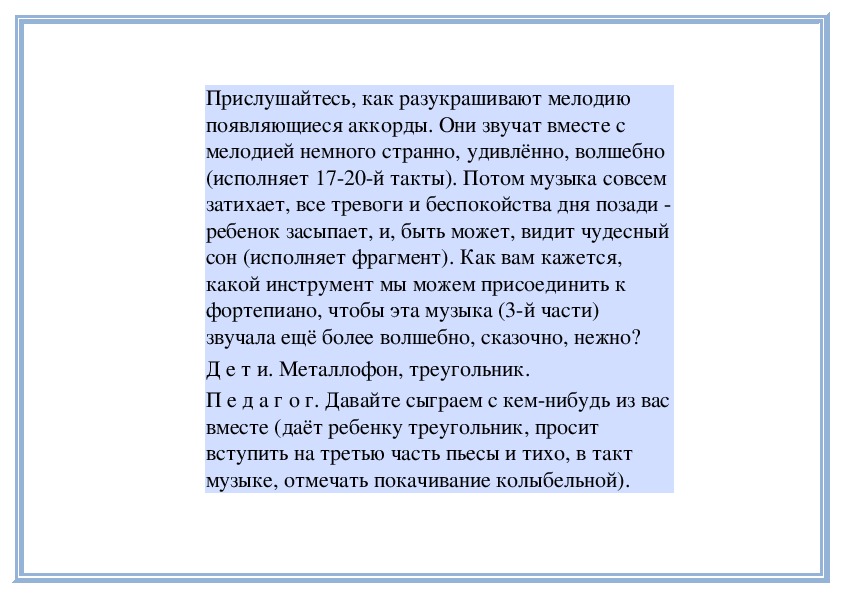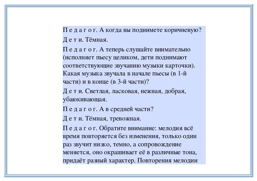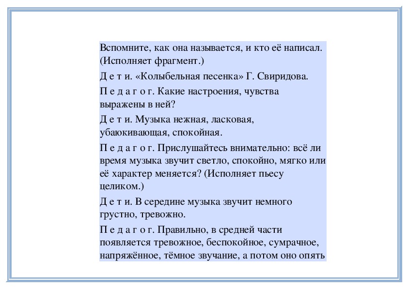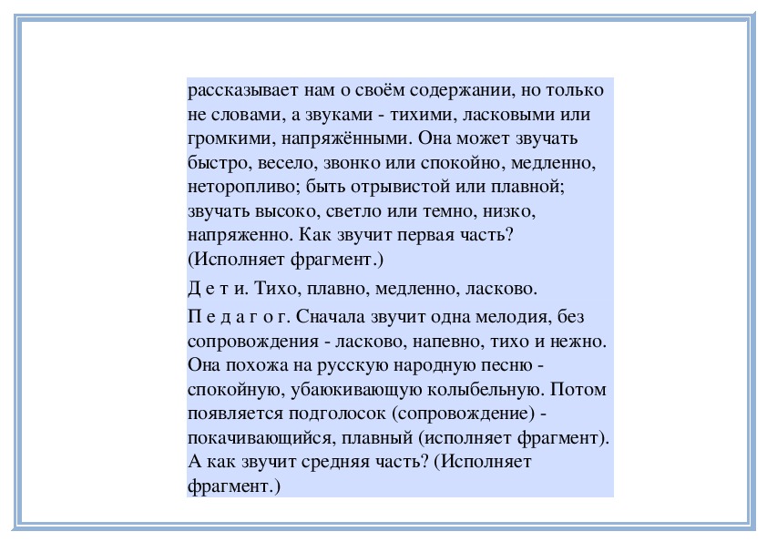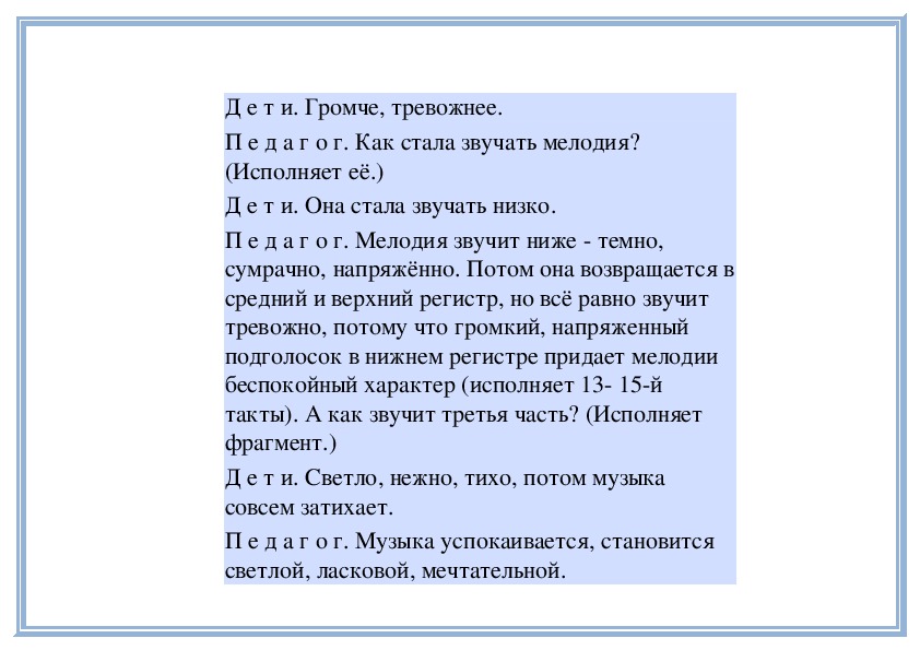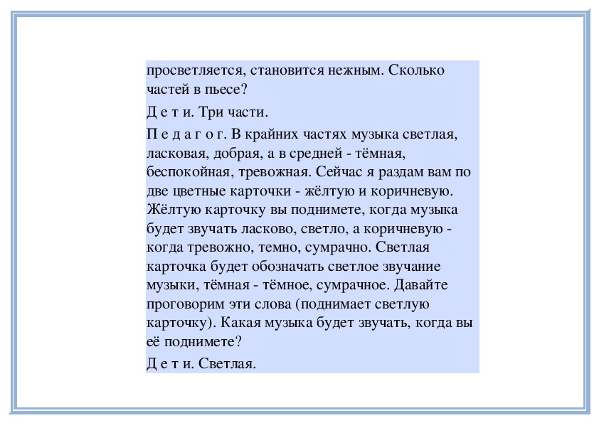 П е д а г о г. Правильно, музыка нежная, светлая,