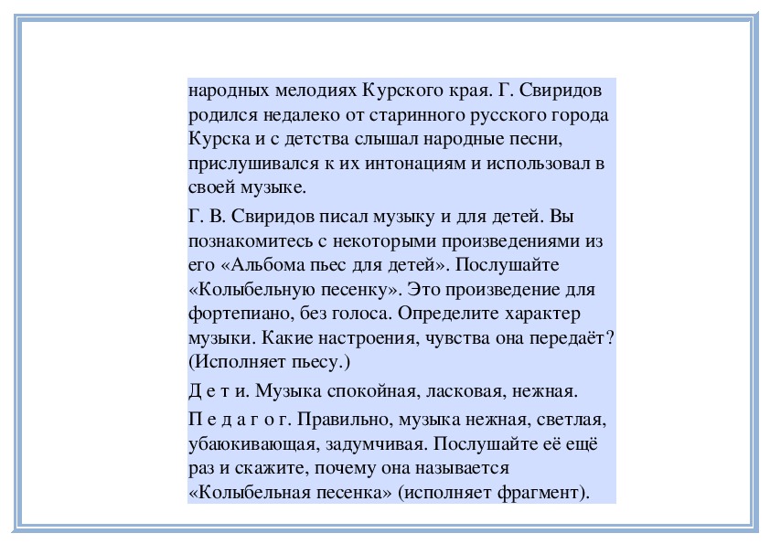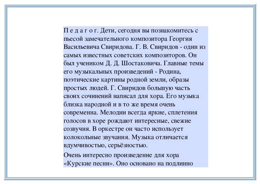 Г. В. Свиридов писал музыку и для детей. Вы