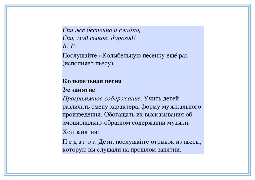 жанр колыбельной песни и характер музыки