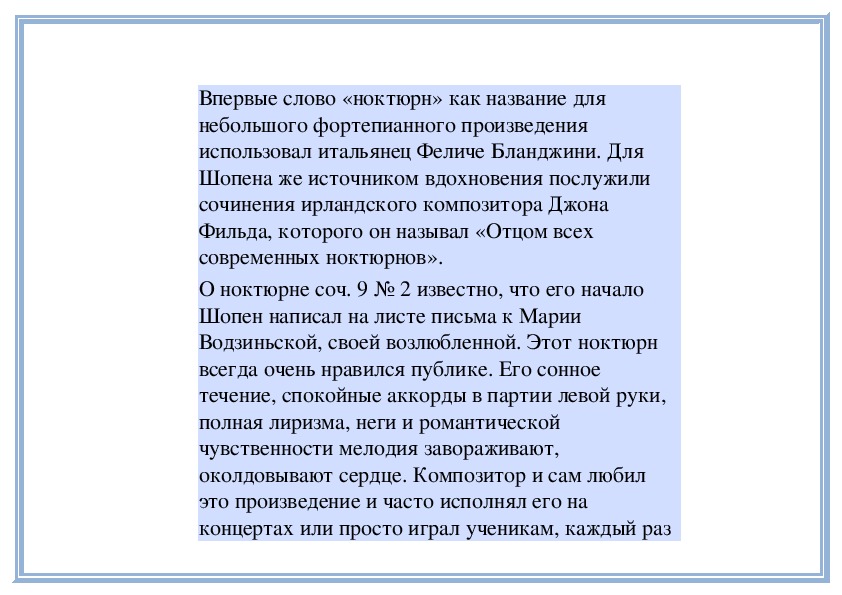 О ноктюрне соч. 9 № 2 известно, что его начало