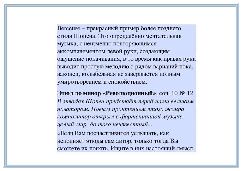 произведениями Шопена и остаются самыми