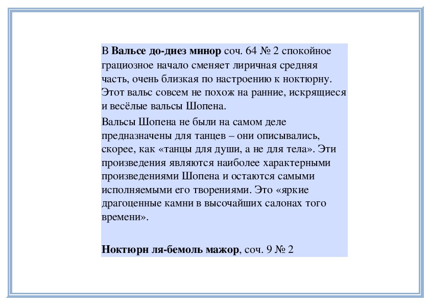 Ноктюрн лябемоль мажор, соч. 9 № 2Впервые слово «ноктюрн» как название для