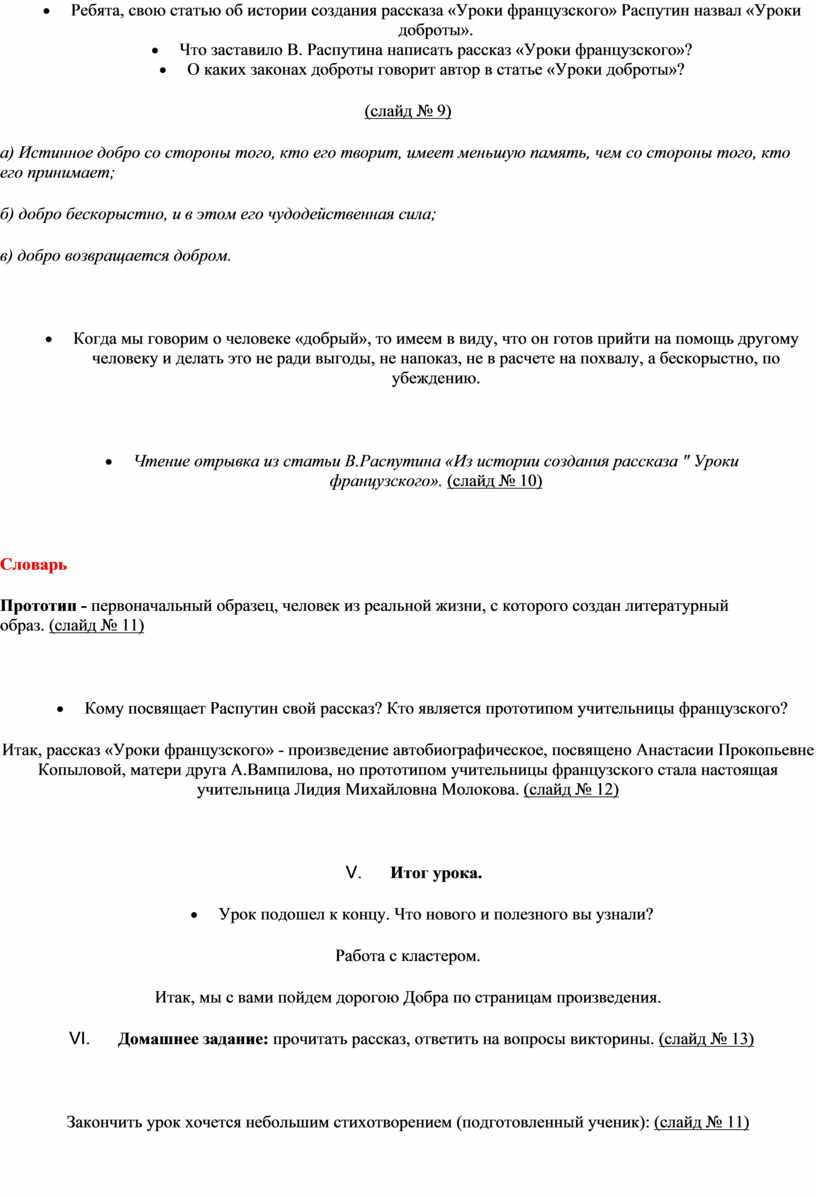 · Что заставило В. Распутина написать рассказ «Уроки французского»?