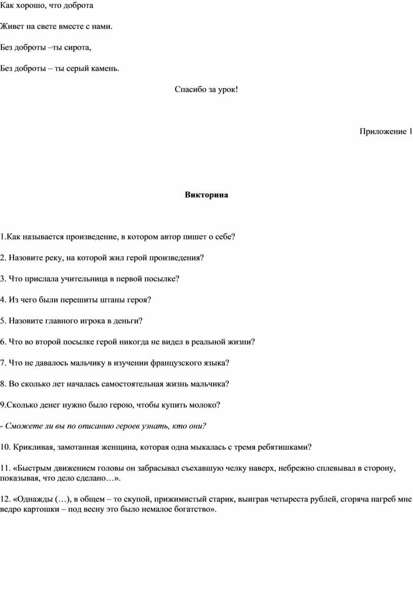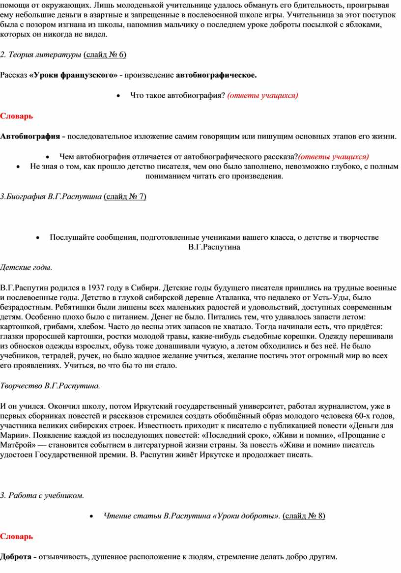 В.Г.Распутин: страницы биографии. Рассказ «Уроки французского»