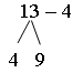 Если из числа 13 вычесть первое слагаемое 4, то получится второе слагаемое 9.