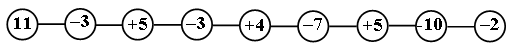 7 + 3 9 – 3 2 + 6 6 – 6 4 + 10 11 – 1 9 + 0 7 – 7 8 + 1 5 – 0 |