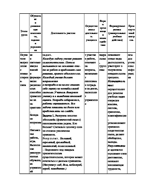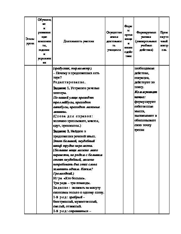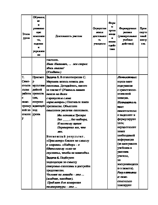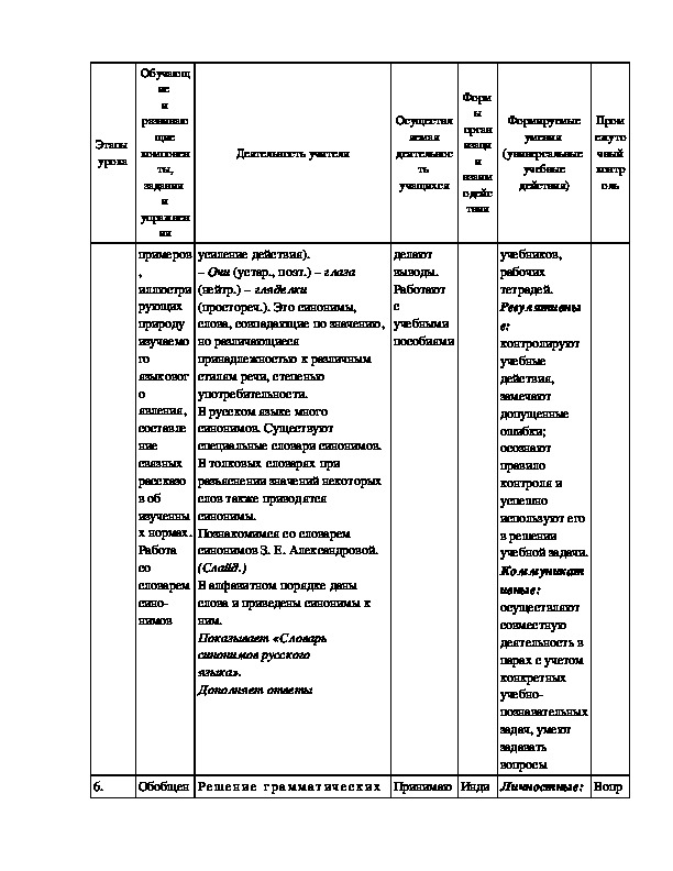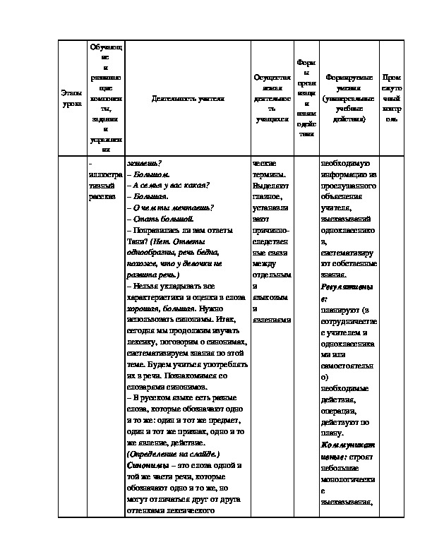 Предметные (объем освоения и уровень владения компетенциями): знать понятие «синонимы», отличия синонимов друг от друга и их связь с многозначными словами; функции синонимов в речи (выразительность, средство связи предложений в речи, средство преодоления неоправданного повторения слов); уметь определять общее лексическое значение синонимов; подбирать синонимы к данным словам; определять смысловые и стилистические отличия друг от друга слов-синонимов; цель использования синонимов в тексте; употреблять нужный синоним в зависимости от разных целей; преодолевать неоправданное повторение одного и того же слова с помощью синонимов.