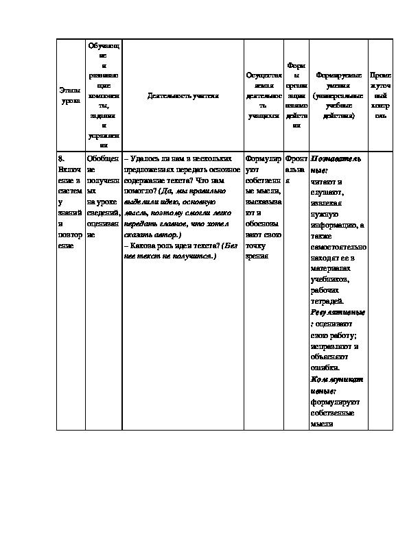 Приемы сжатия текста, микротемыОрганизационная структура (сценарий) урока
