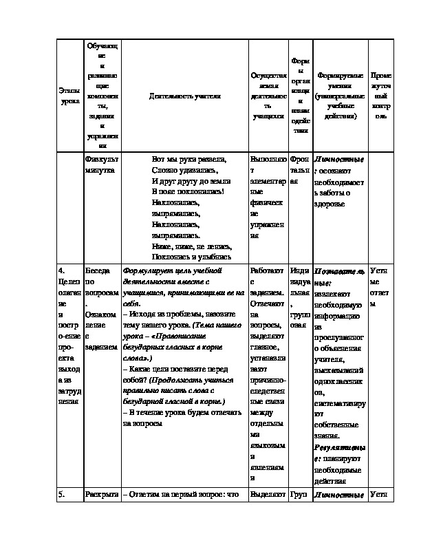 Предметные (объем освоения и уровень владения компетенциями): знать особенности проверочных слов и способы проверки; уметь применять правило правописания безударных гласных в корне слова, осуществлять проверку безударной гласной в корне.