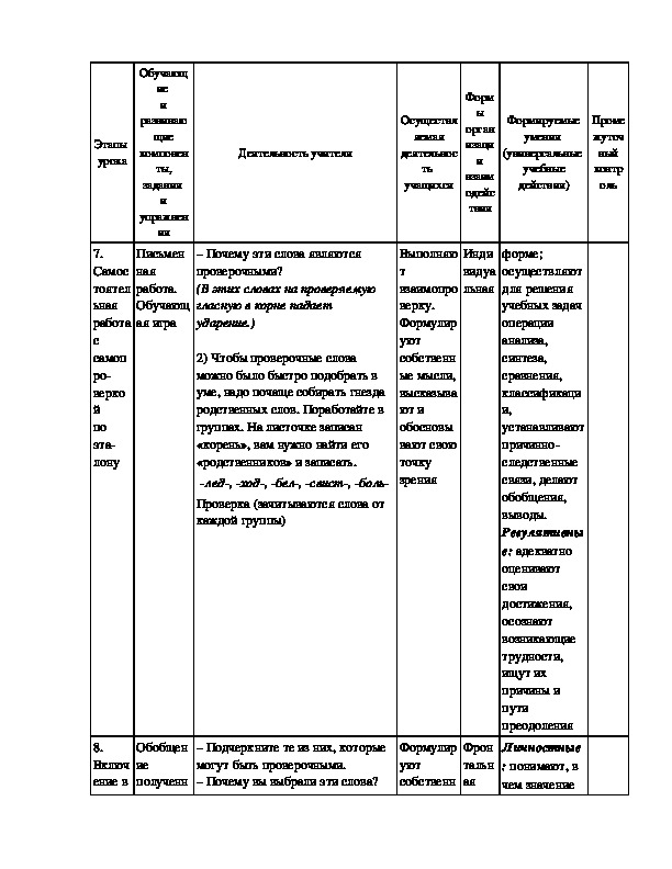 проверки; развивать орфографическую зоркость; внимание, мышление, речь
