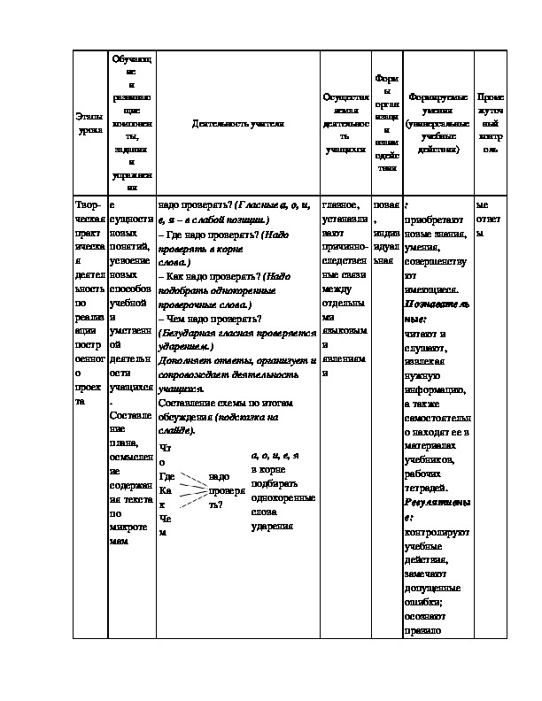схема с основными вопросами урока; алгоритм проверки безударной гласной;