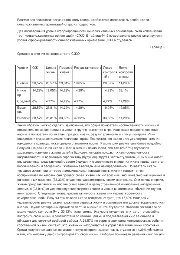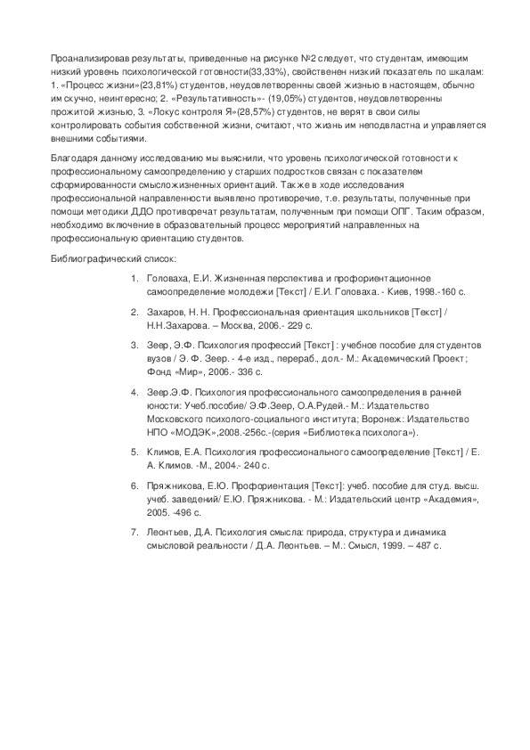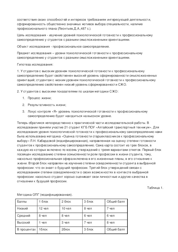 Предмет исследования – уровни психологической готовности к профессиональному самоопределению у студентов с разными смысложизнеными ориентациями.конспект
