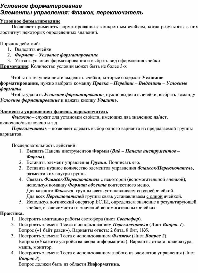 Позволяет применить форматирование к конкретным ячейкам, когда результаты в них достигнут некоторых определенных значений.