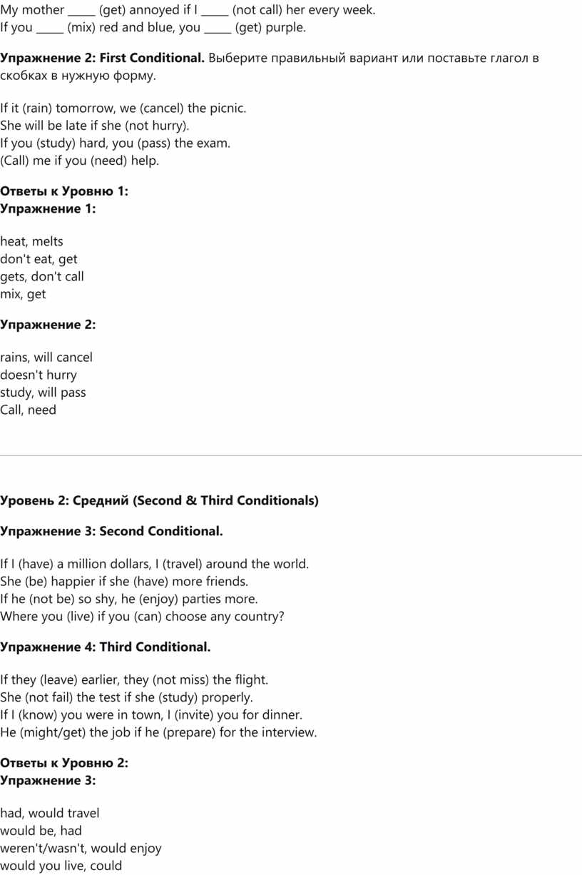 Уровень 2: Средний (Second & Third Conditionals)