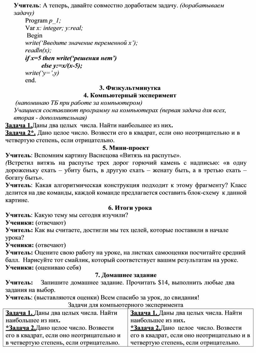 Ученики: Программирование разветвляющихся алгоритмов. Условный оператор на языке Паскаль.