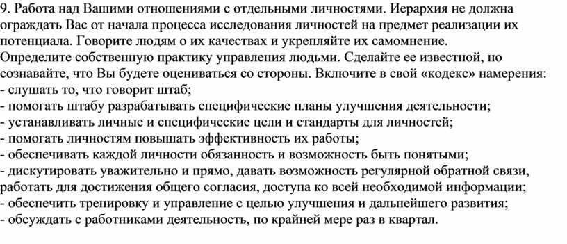 9. Работа над Вашими отношениями с отдельными личностями. Иерархия не