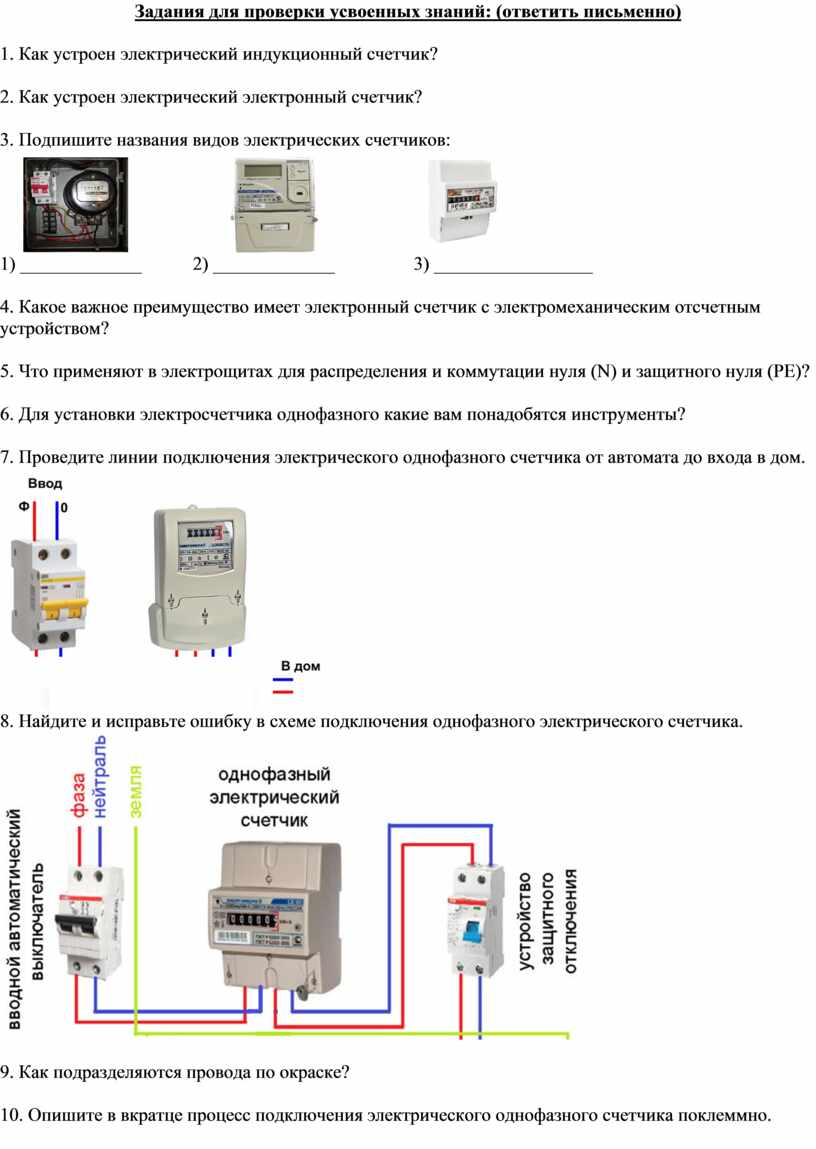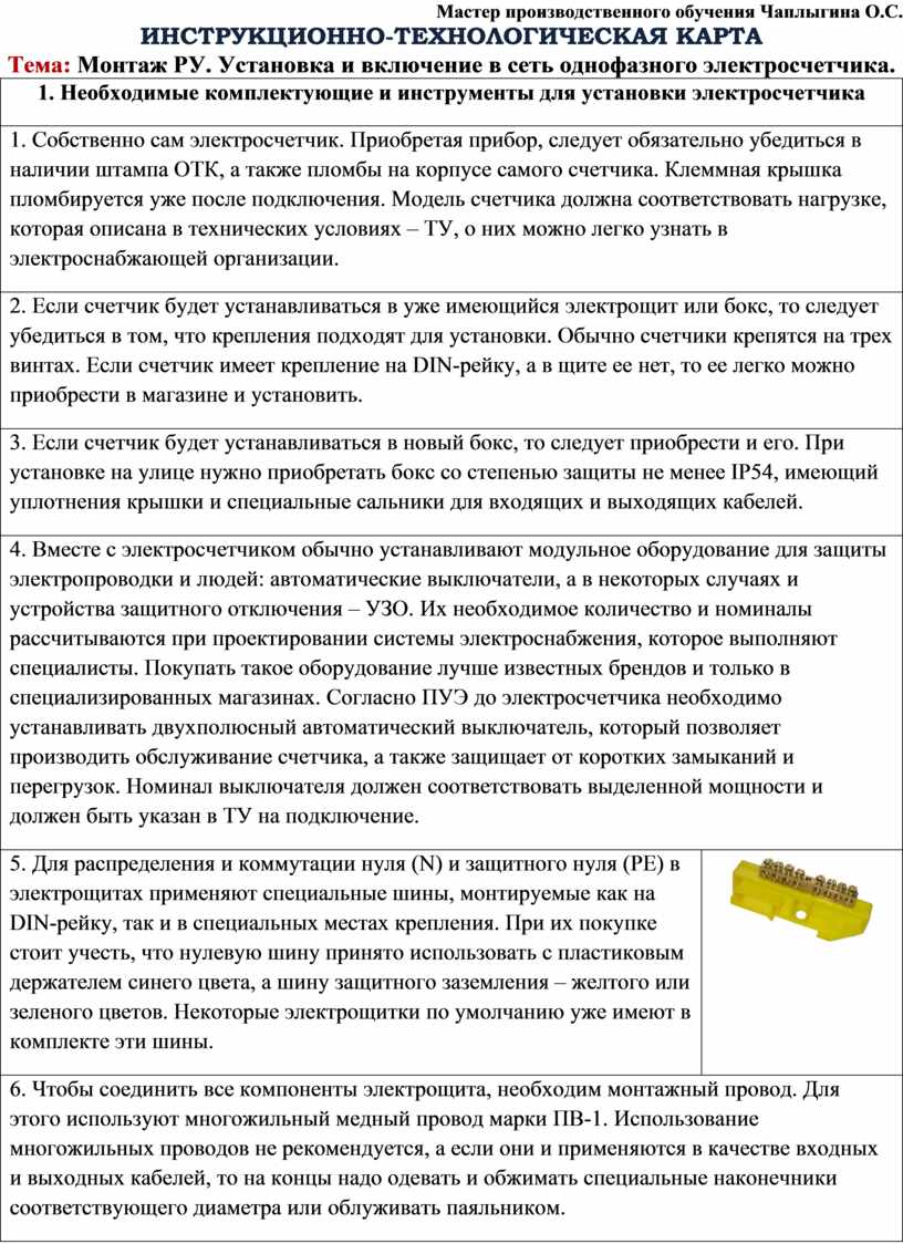 Тема: Монтаж РУ. Установка и включение в сеть однофазного электросчетчика.