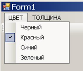 MenuItemCheck ("&Красный", ЦВЕТ);