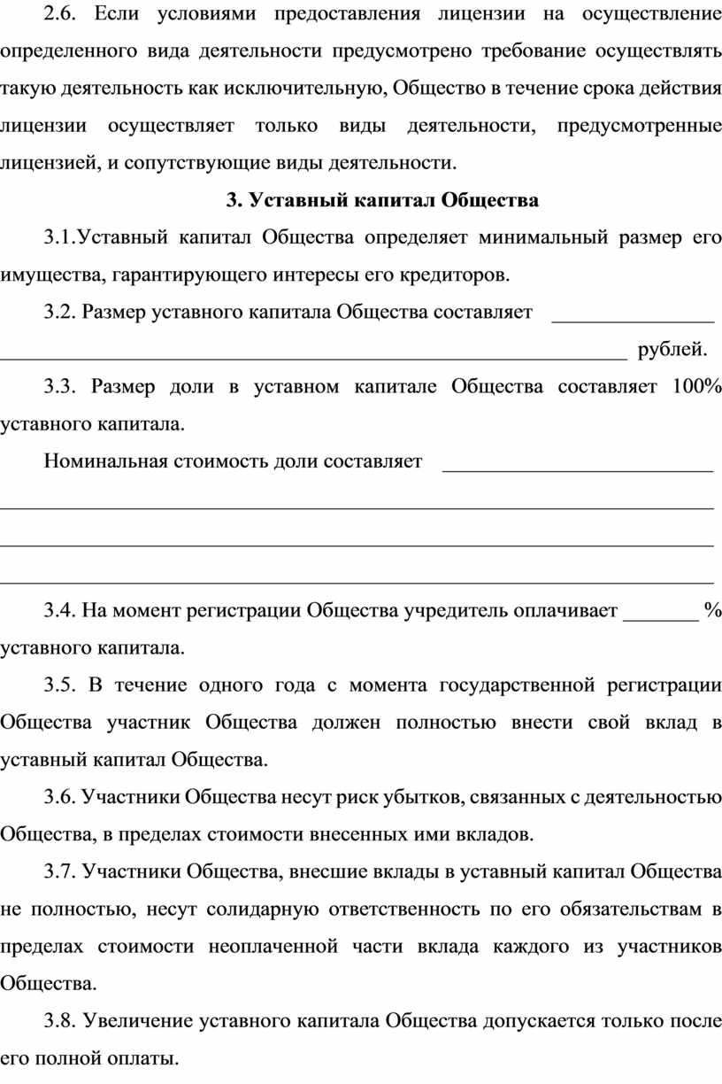 3.4. На момент регистрации Общества учредитель оплачивает _______ % уставного капитала.