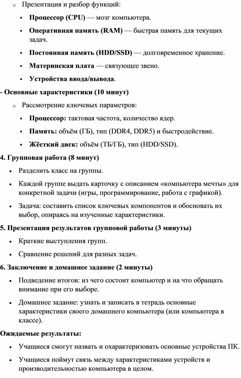 - Основные устройства компьютера (15 минут)