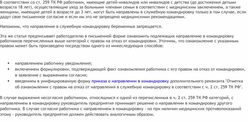 перечисленных выше категорий с правом на отказ от командировки. Уточним, что