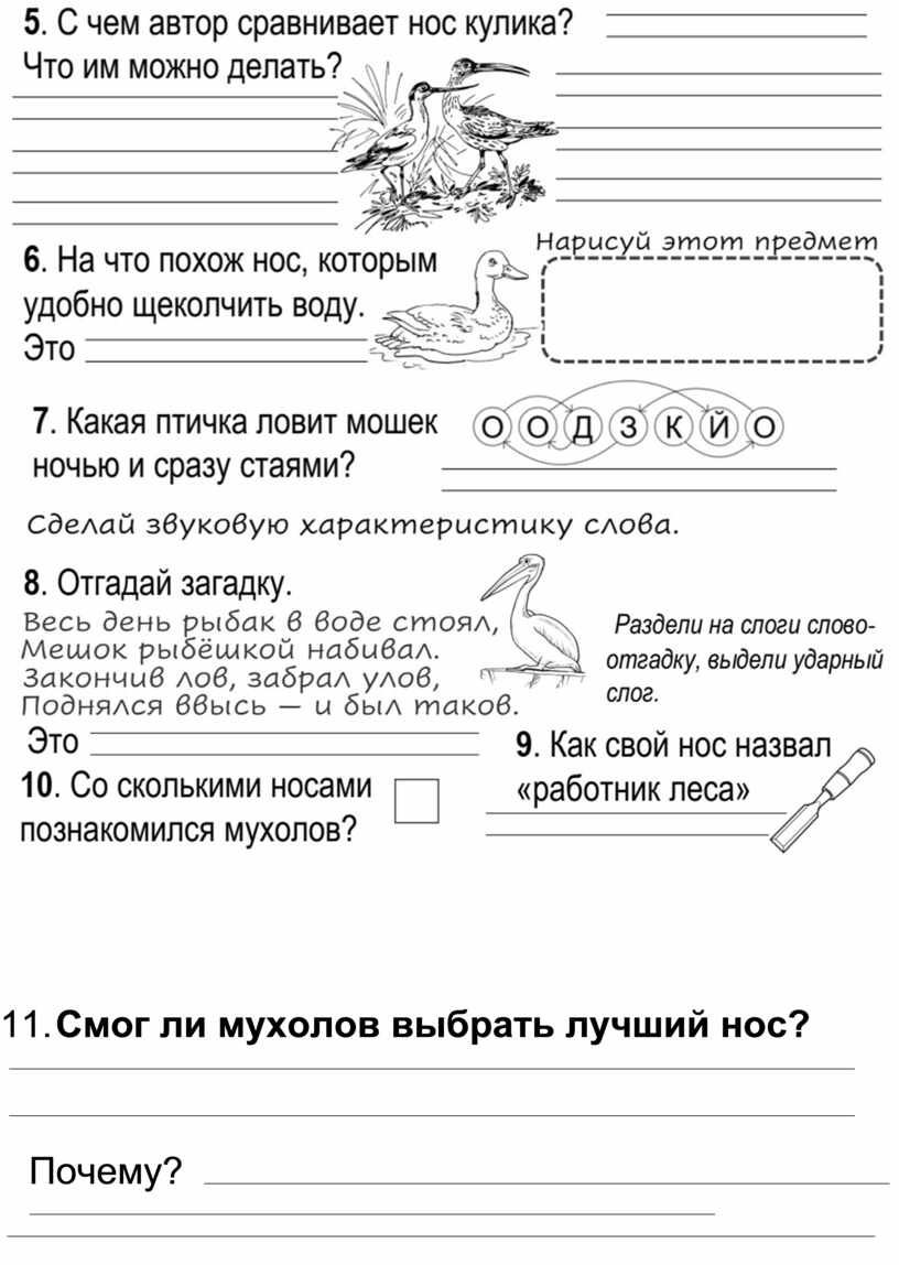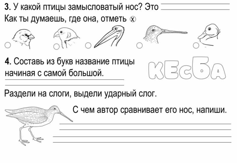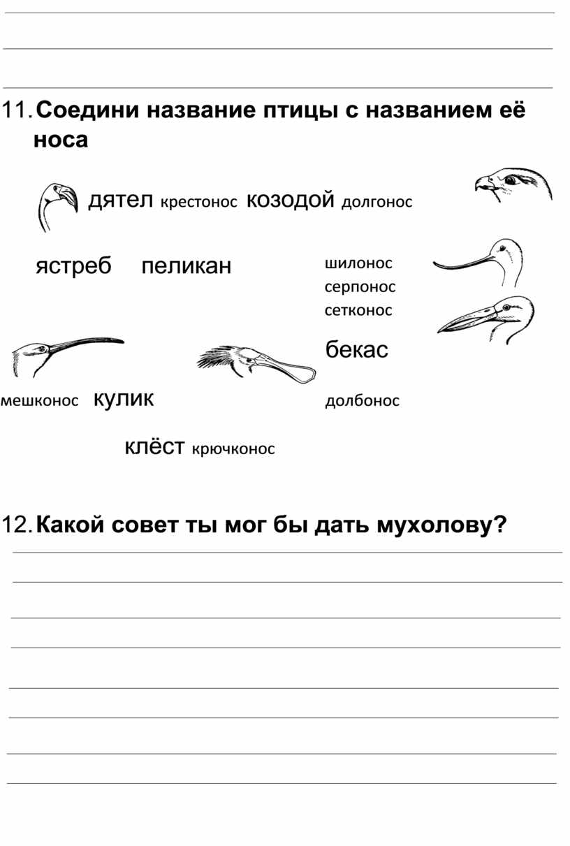 12. Соедини название птицы с названием её носа